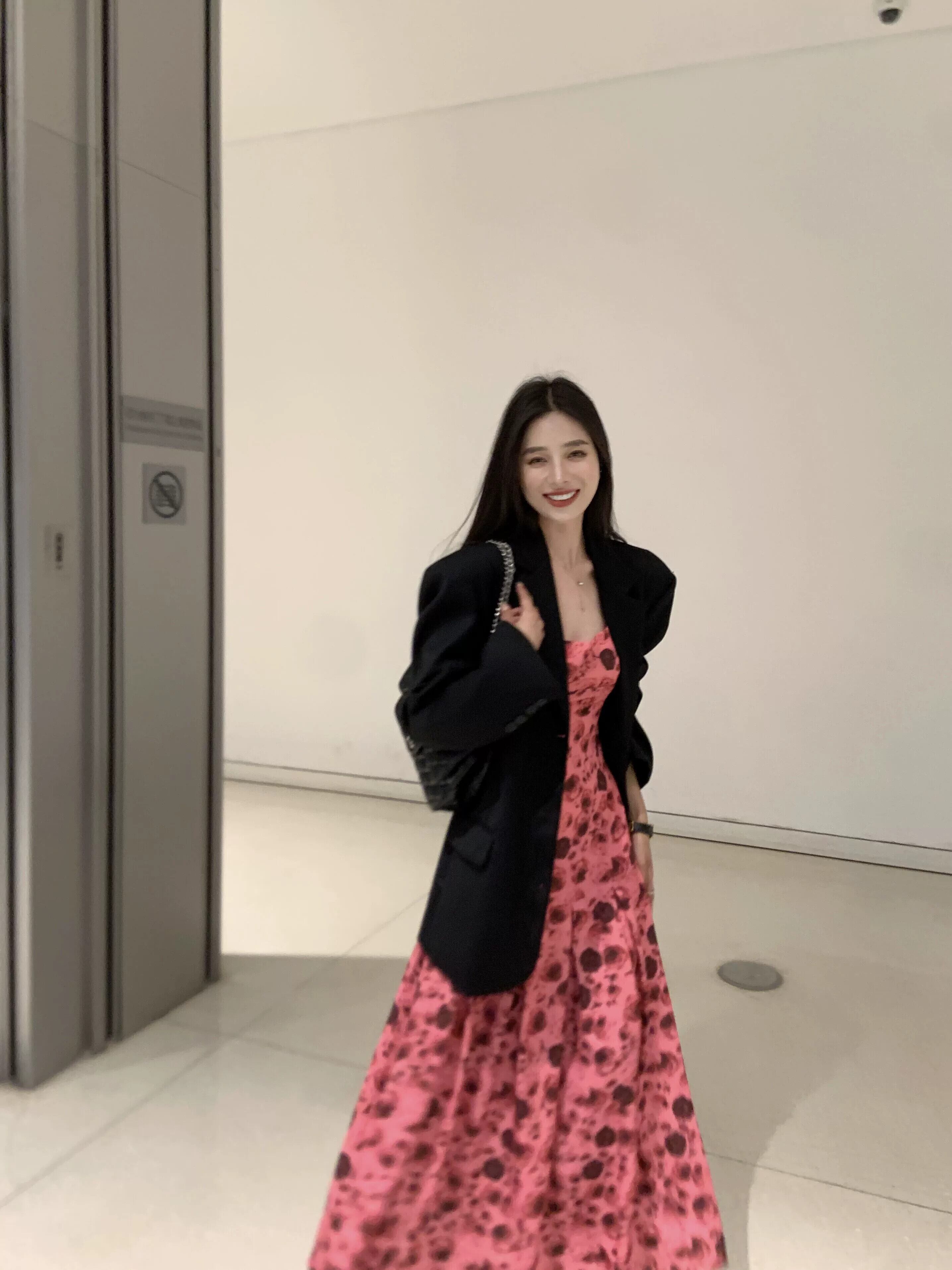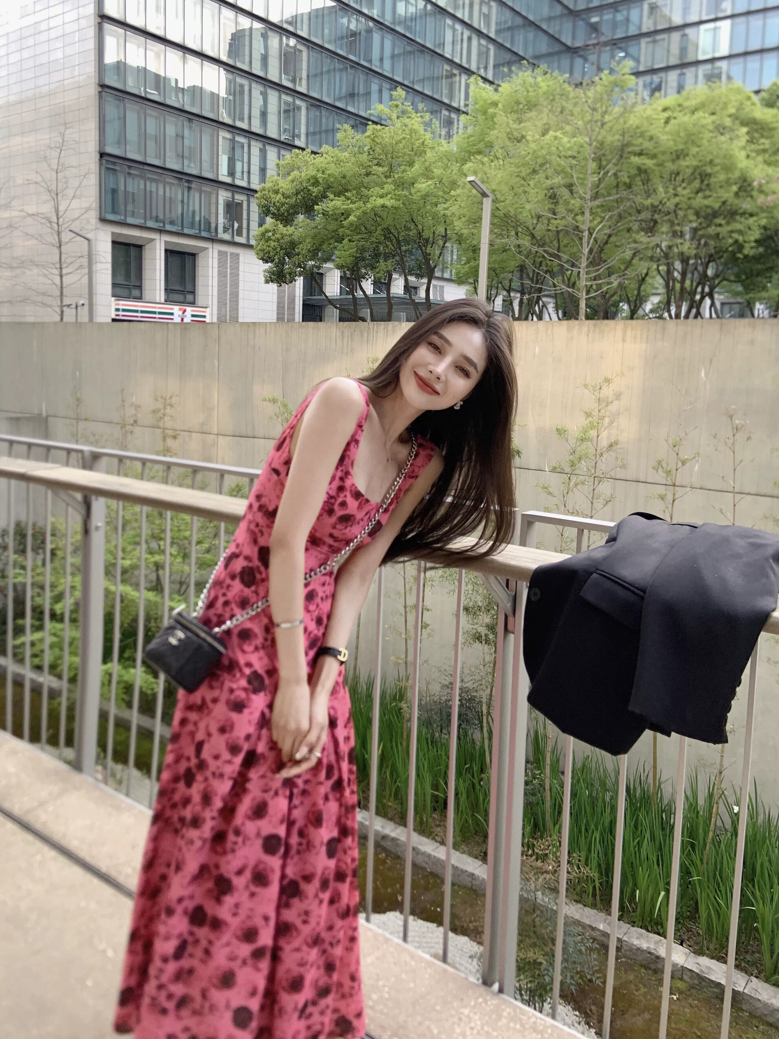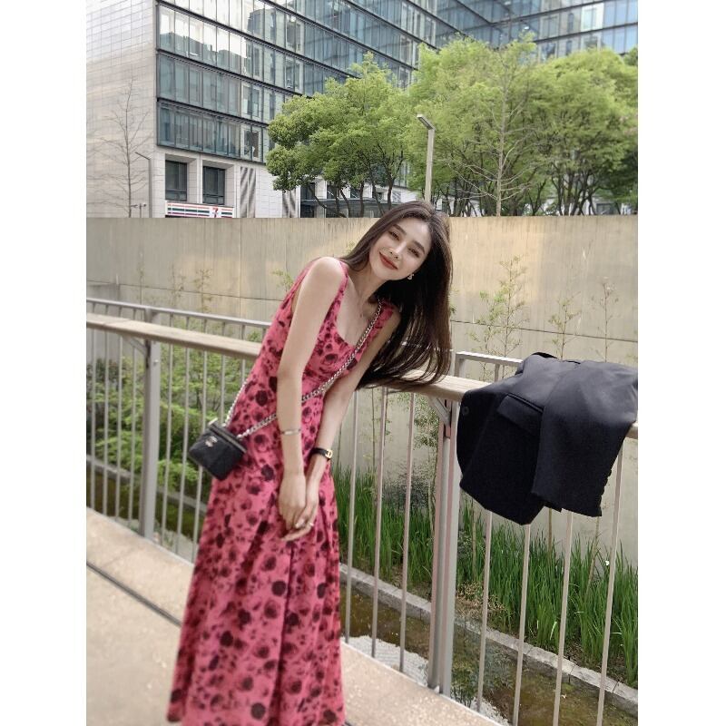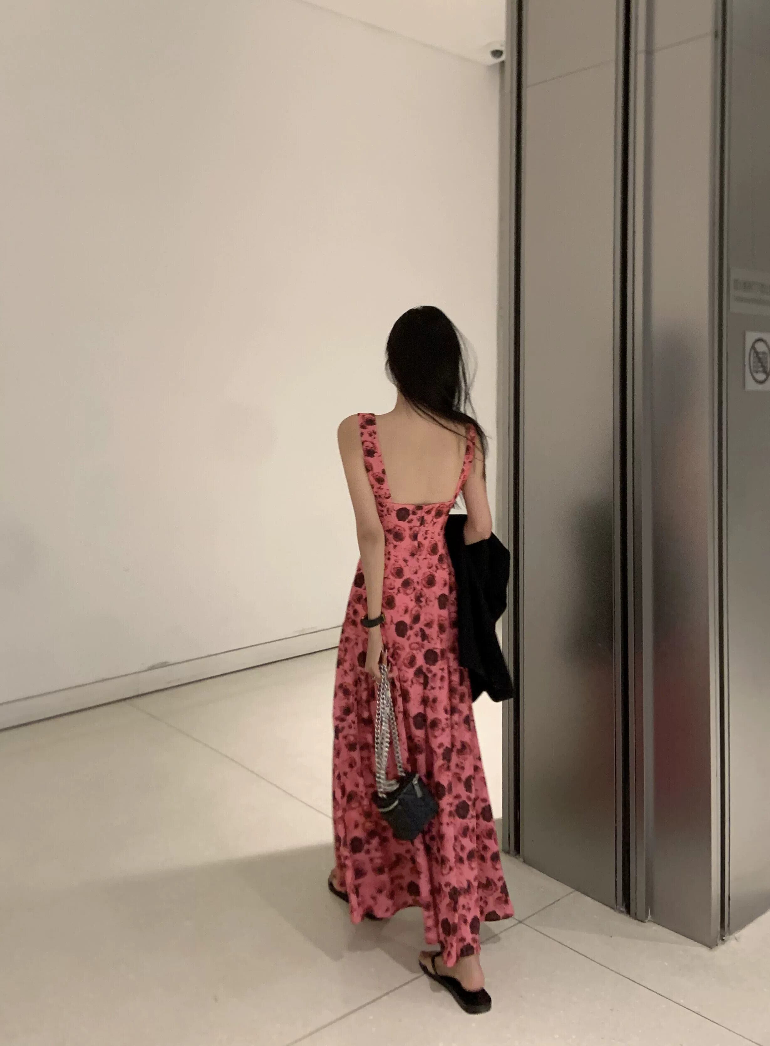 甘くてスパイシーなスタイルのスクエアカラーオープンバック花サスペンダードレス女性の夏の 2023 新しい気質ウエスト痩身ロングスカート 大人ガーリー スウィート キュート カジュアル サマー 夏物 花柄 スクウェア 0921995825600743