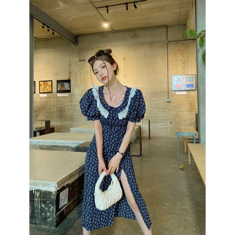 フィーリング蓮の葉サイドスリット花柄半袖ドレス女性の夏の 2023 新しいスタイル eign スタイルスリムミドル丈スカート潮 サマー 夏物 0921919846393246