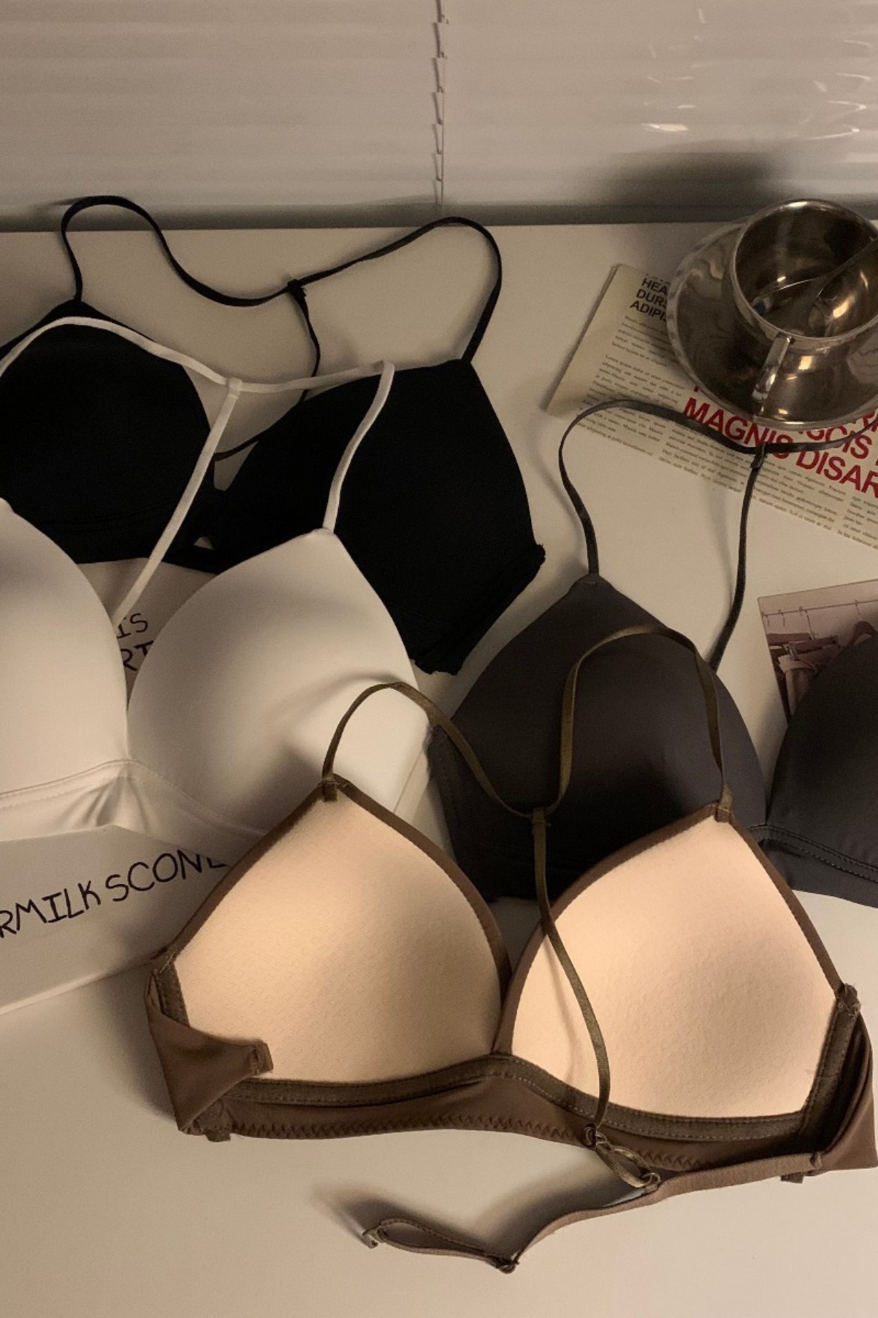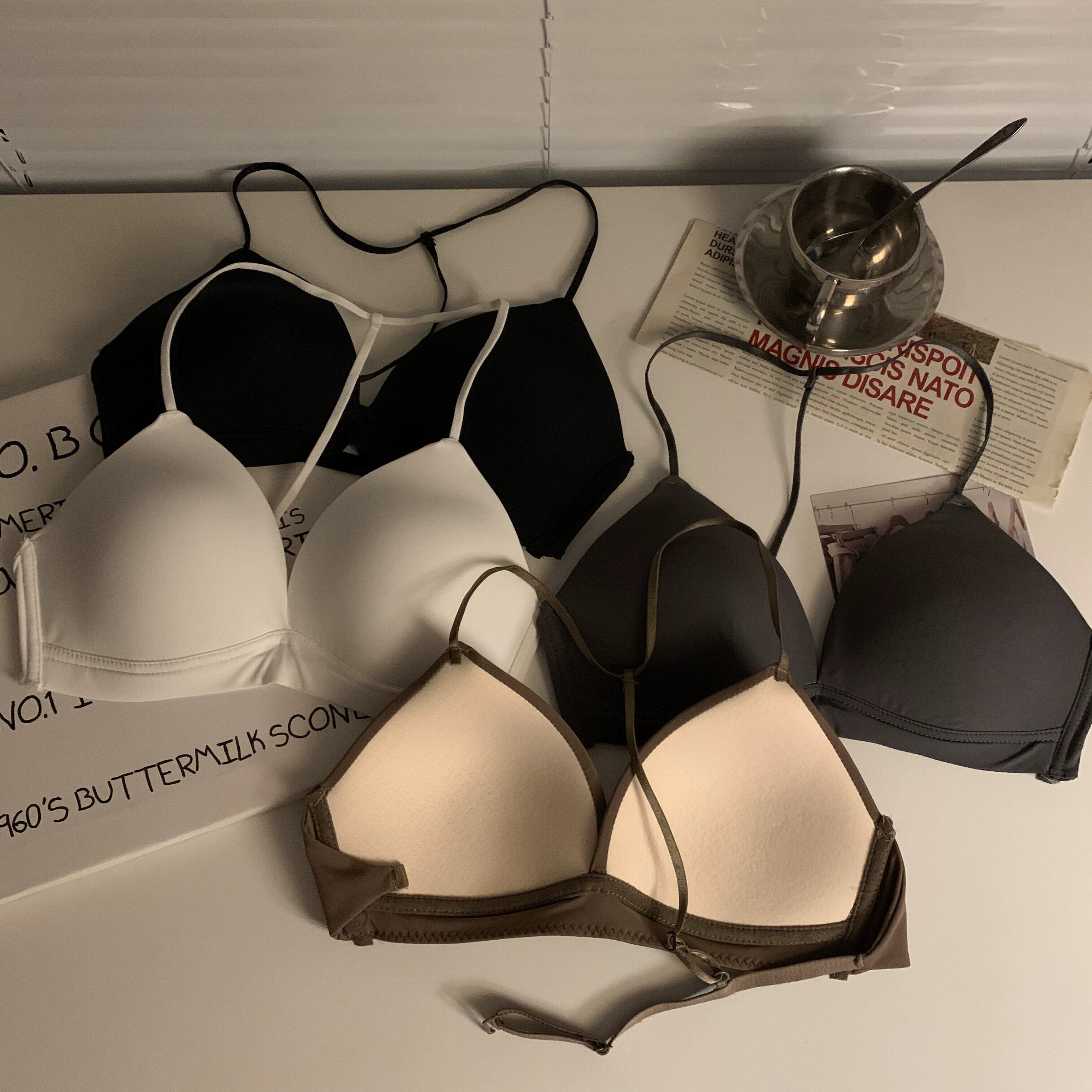 ソリッドカラー多用途トライアングルカップなしスチールリングブラジャー下着女性の夏 2023 新しい調整可能なソリッドカラーの美しいバックチューブトップ サマー 夏物 アジャスタブル 指輪 0921985804040739