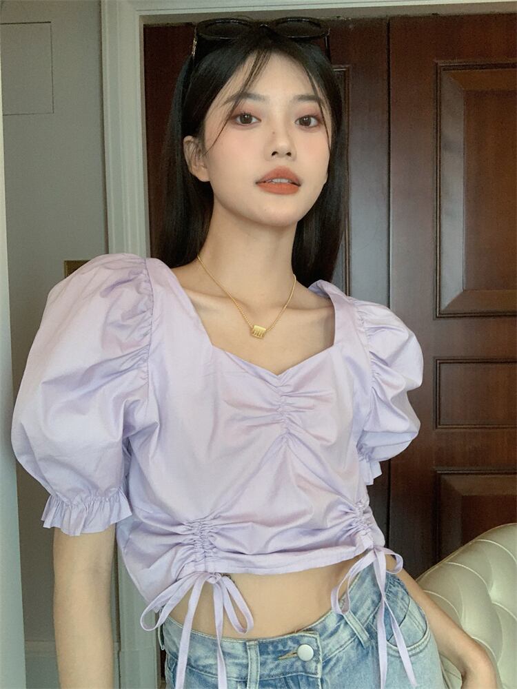 オールマッチパフスリーブシャツレディース2023年夏新デザインセンス巾着痩身ショートトップ サマー 夏物 0921912847301324