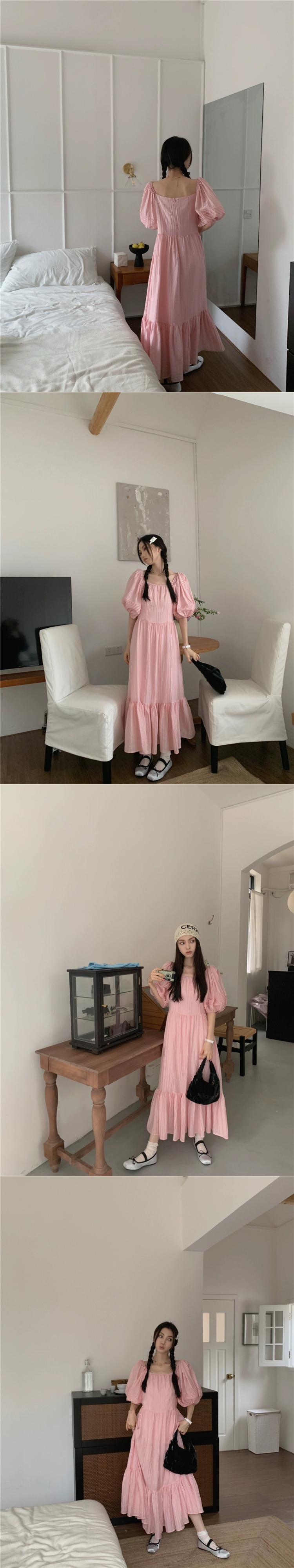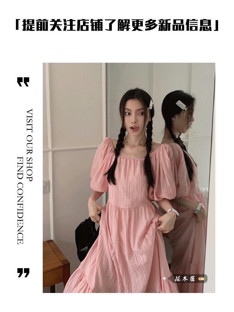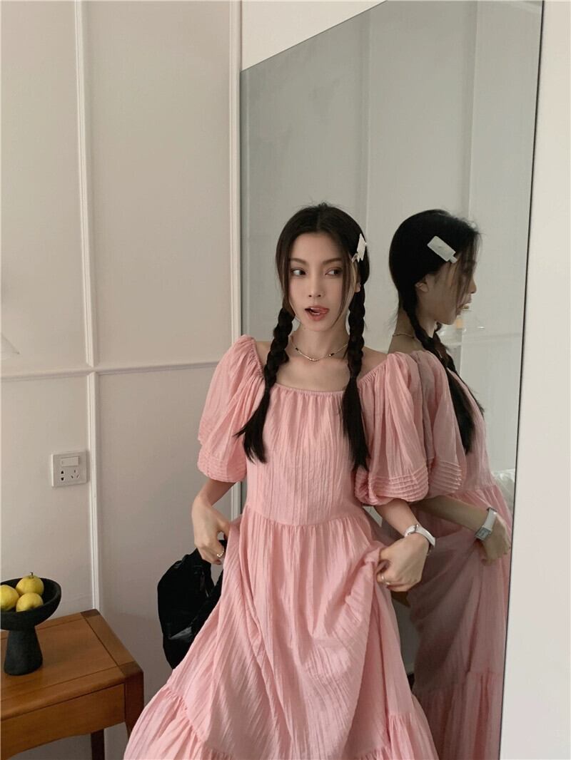 スタイル甘くて優しいスクエアカラーパフスリーブドレス女性の夏の2023新しい緩くて薄いアウターロングスカート 大人ガーリー スウィート キュート カジュアル サマー 夏物 スクウェア 0921991519678193