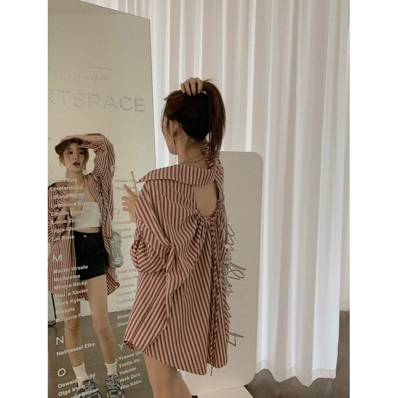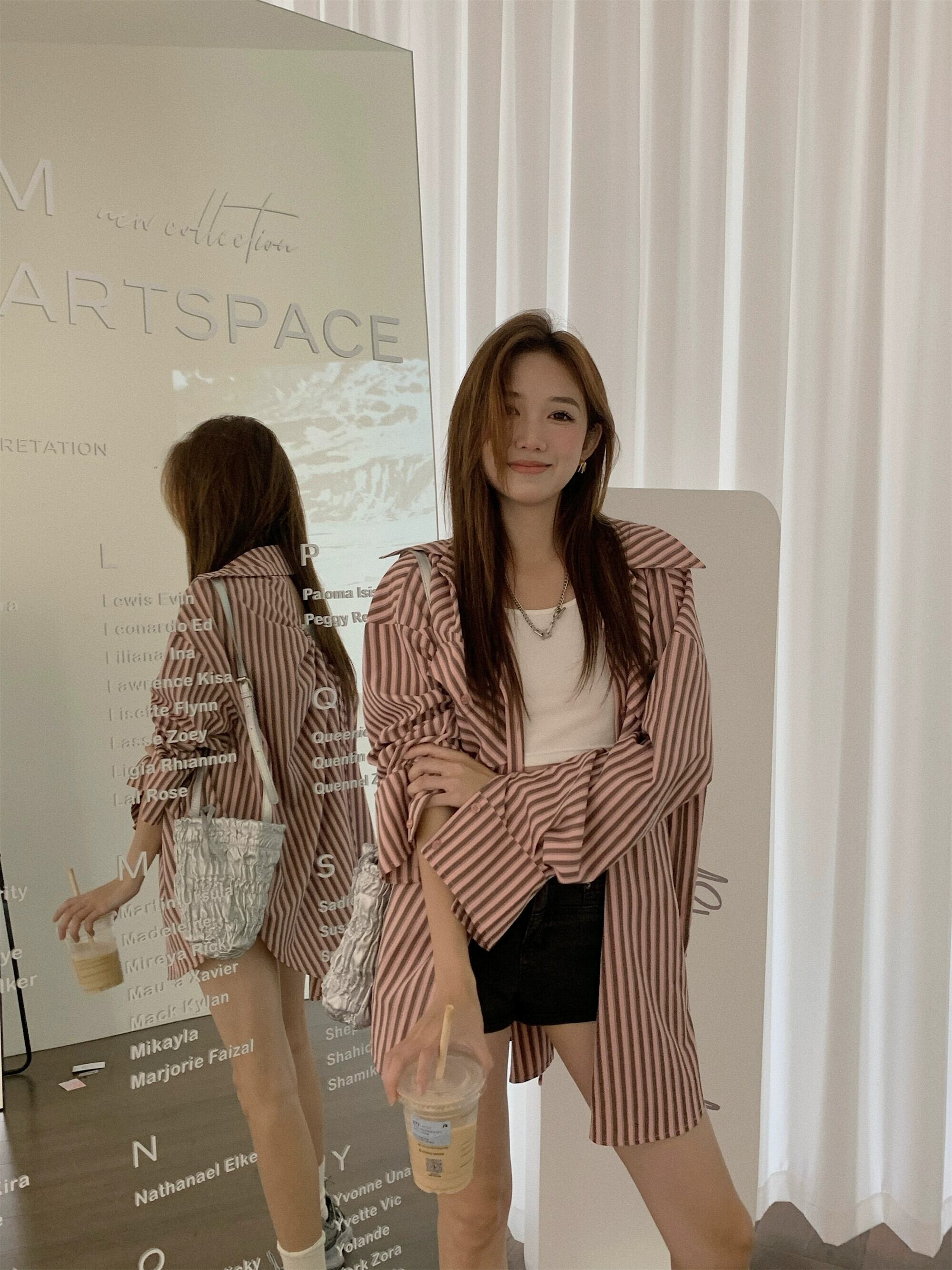 ストライプ長袖日焼け止めシャツ女性の夏 2023 新しい気質オールマッチミッドレングスルーズシャツ ロング サマー 夏物 0921987957635371