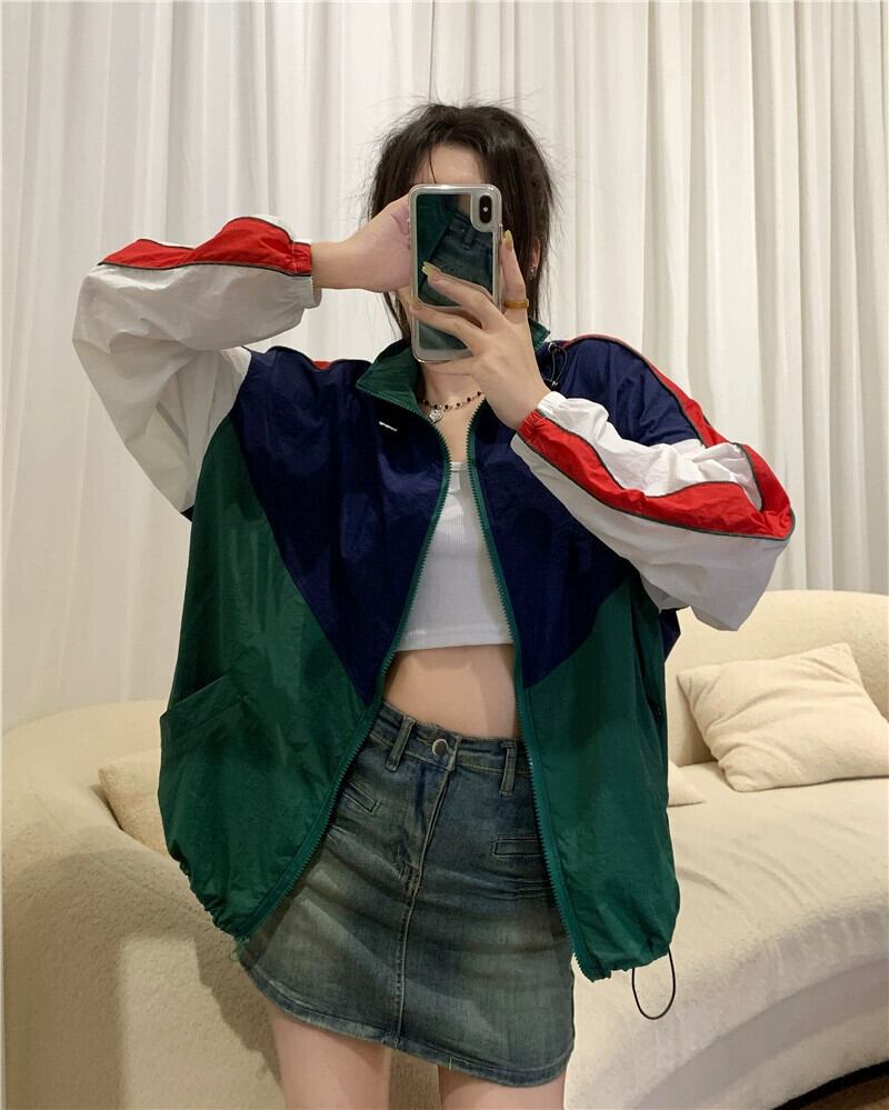 ファッションカラーマッチングフード付き薄型ジャケット女性の 2023 春の新しいオールマッチルーズスリムジッパーカーディガン スプリング 春物 0921927080296349