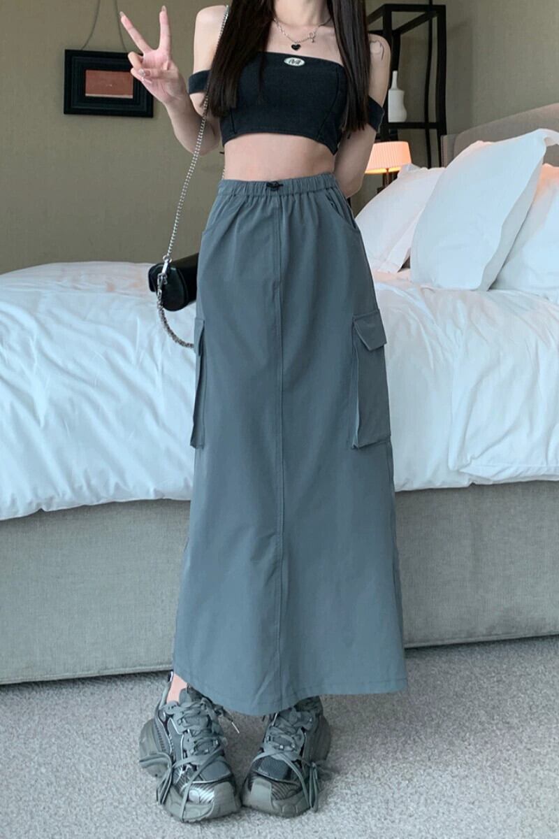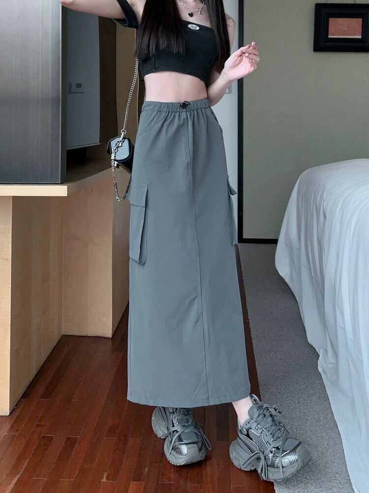 バージョンのレトロニッチツーリングスカート女性の夏の 2023 新しいミッドレングス薄いセクションハイウエストスリム A ラインスカート ハイウェスト サマー 夏物 Aライン 0921940025070237