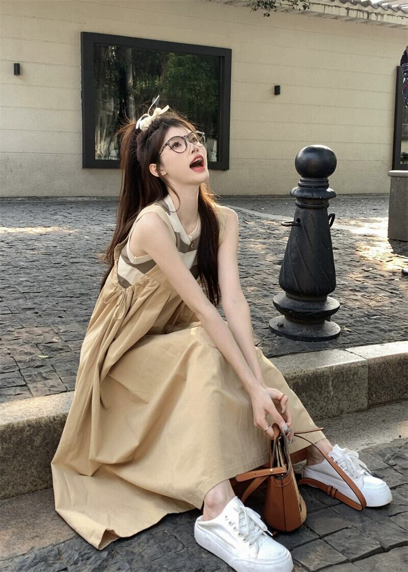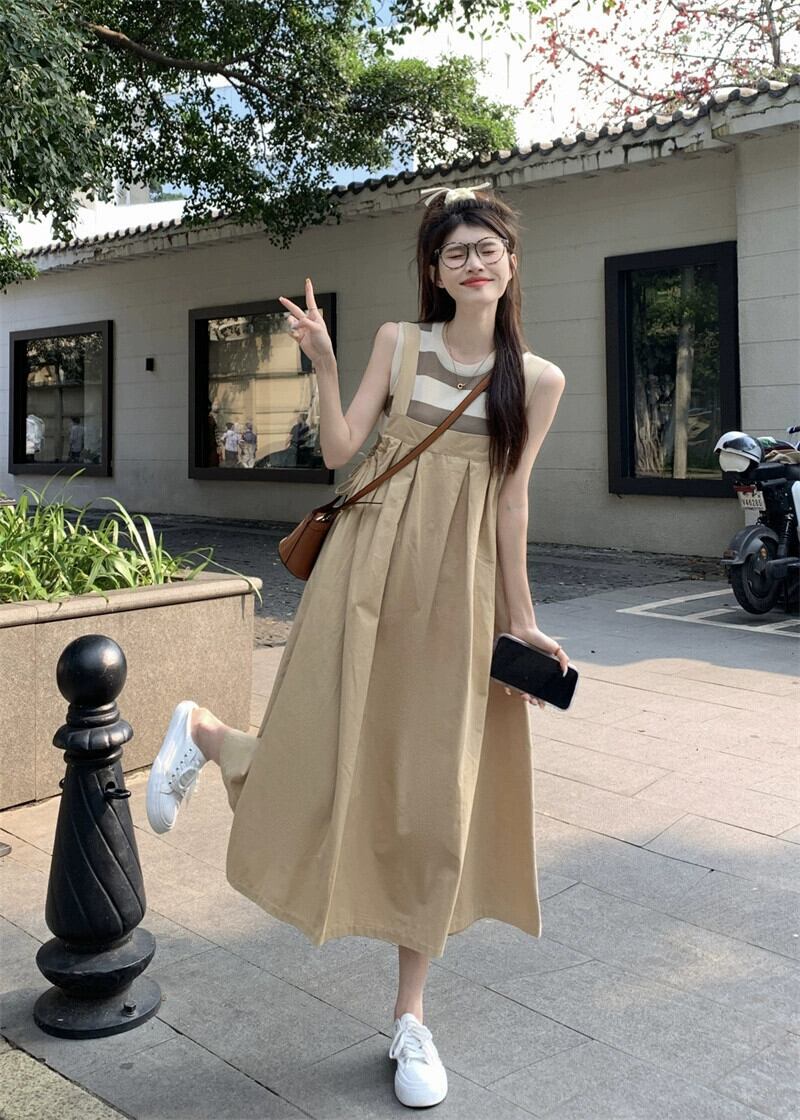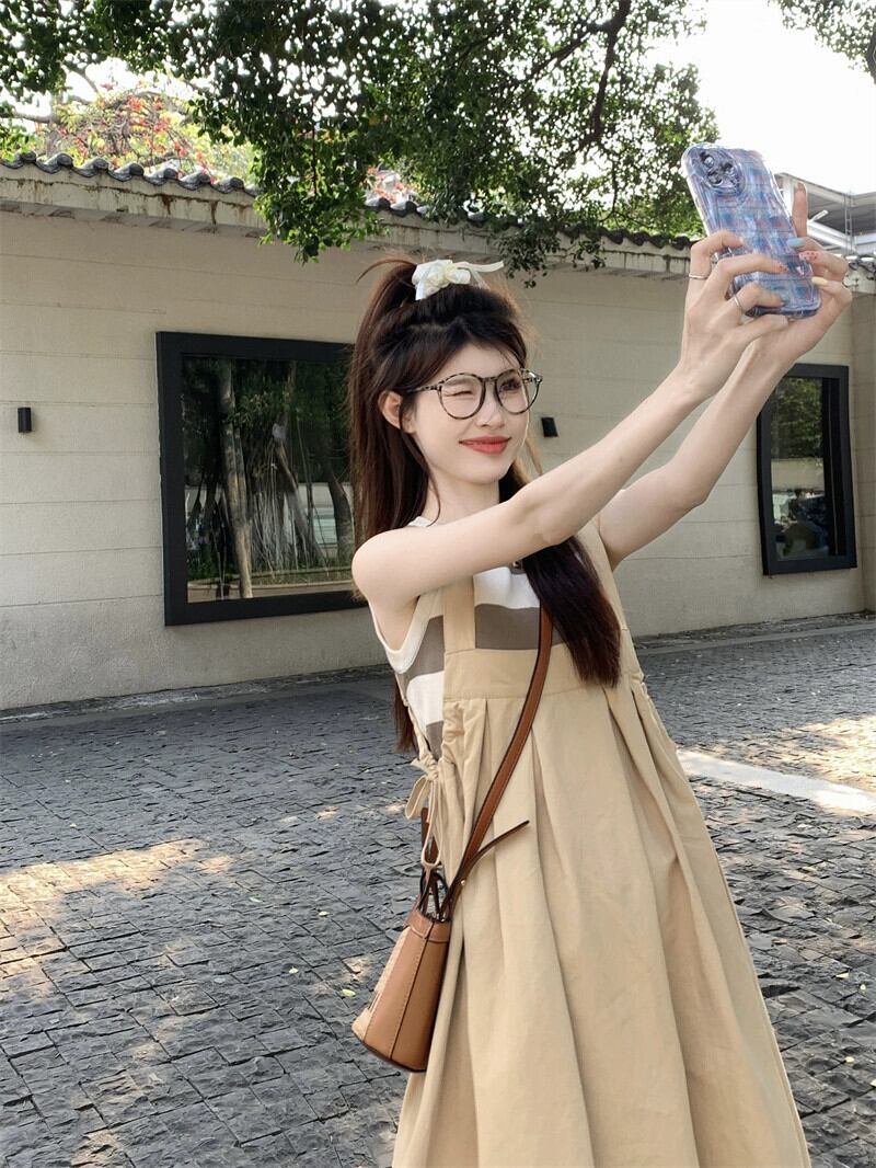スタイルイン年齢軽減サスペンダードレス女性の夏の 2023 新しいミッドレングス eign スタイル薄いオールマッチ A ラインスカート サマー 夏物 Aライン 0921929255398714