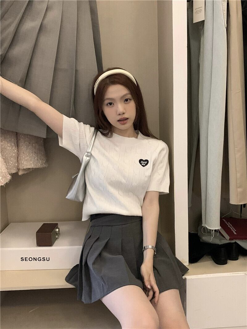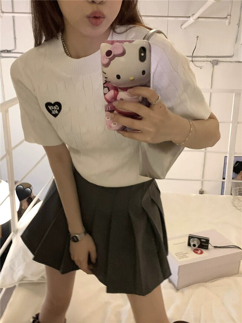 ゴーストホース刺繍ニットTシャツレディース2023夏新デザインセンススリムショート半袖トップス サマー 夏物 0921936151809627