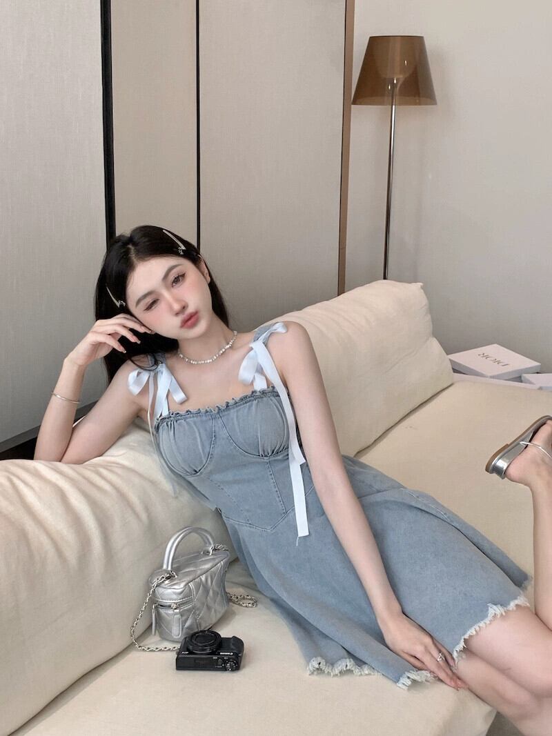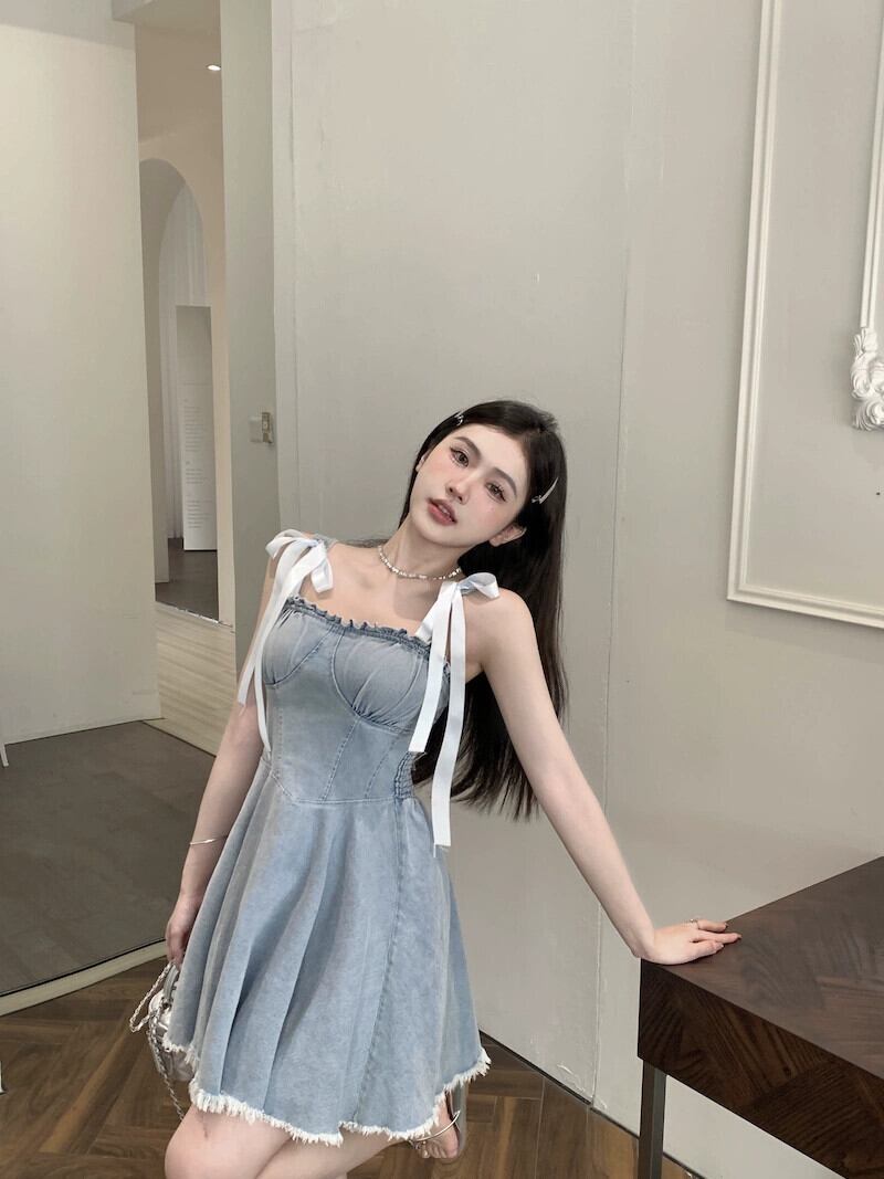 甘くてクールなデニムサスペンダードレスの女性の夏の 2023 新しいレトロウールエッジスカート小さなスカート 大人ガーリー スウィート キュート カジュアル サマー 夏物 0921972655182574
