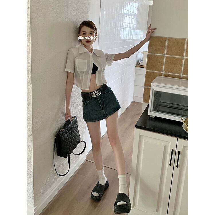 レトロスタイルハイウエストスカート女性の夏 2023 新しいニッチスリムデニム A ラインスカートパンツ ハイウェスト サマー 夏物 Aライン 0921984941380122