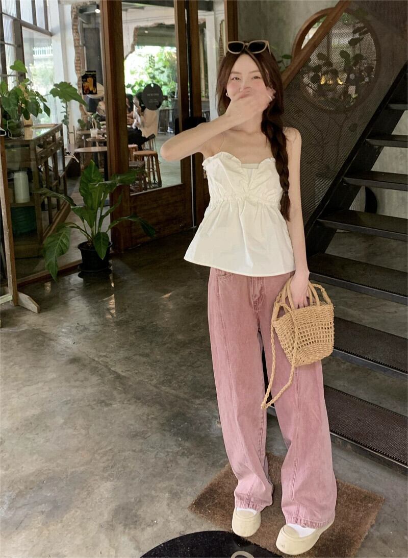甘い純粋な欲望の花のつぼみ小さなスリング女性の夏 2023 新しい気質スリムスリム底ノースリーブトップ 大人ガーリー スウィート キュート カジュアル サマー 夏物 ピュア フラワーデザイン 0921995748358943
