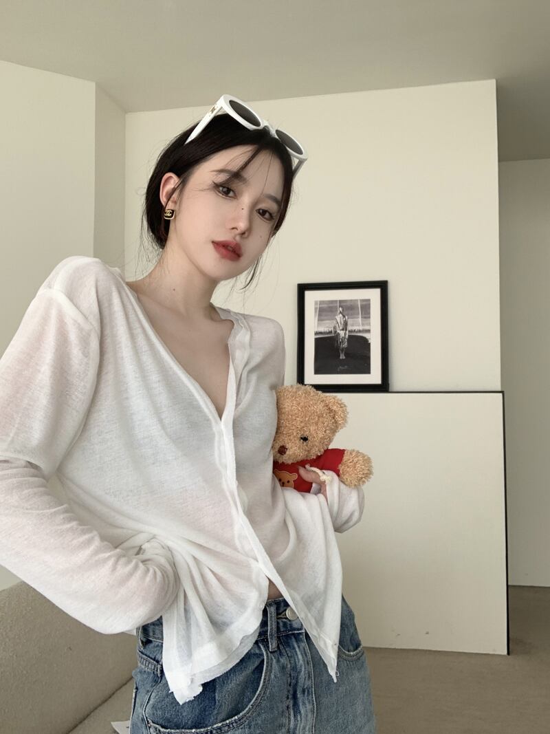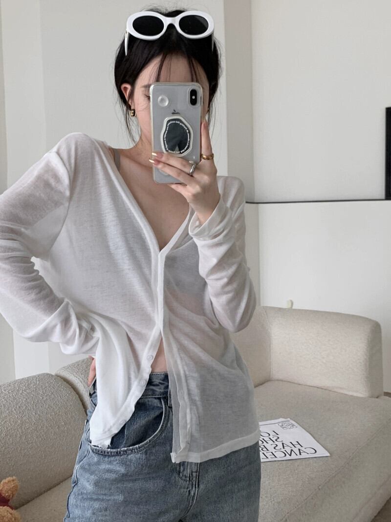 デザインセンス薄いセクション日焼け止め長袖 Tシャツ女性の 2023 夏の新しいオールマッチルーズで薄いカーディガントップ ロング サマー 夏物 092194337671541