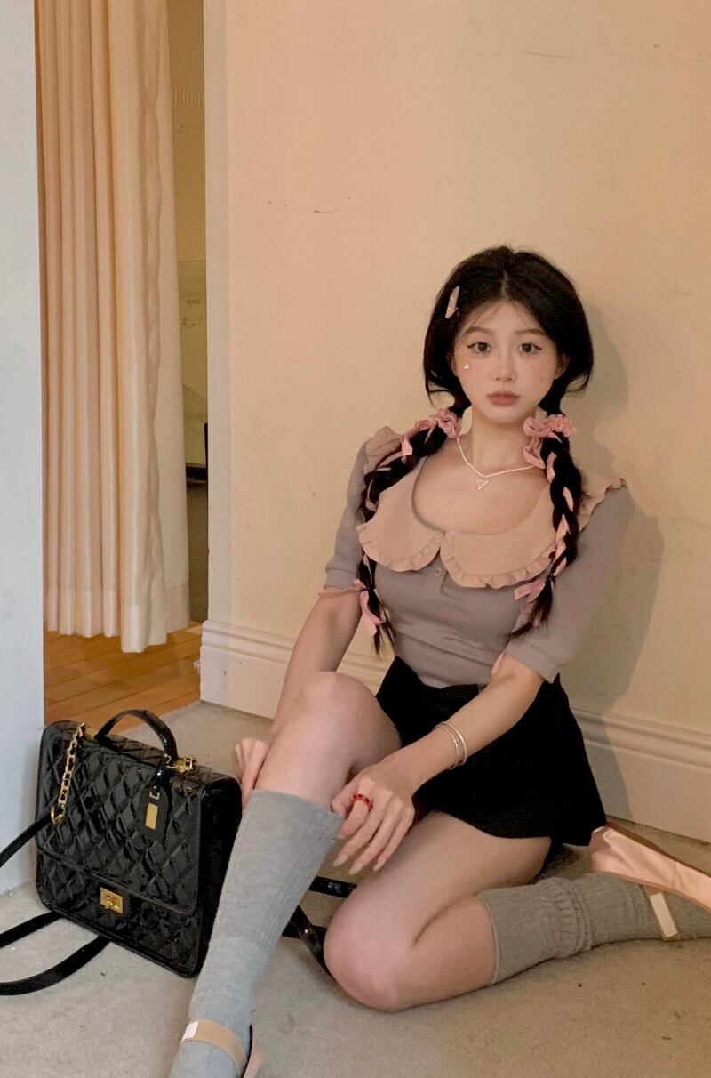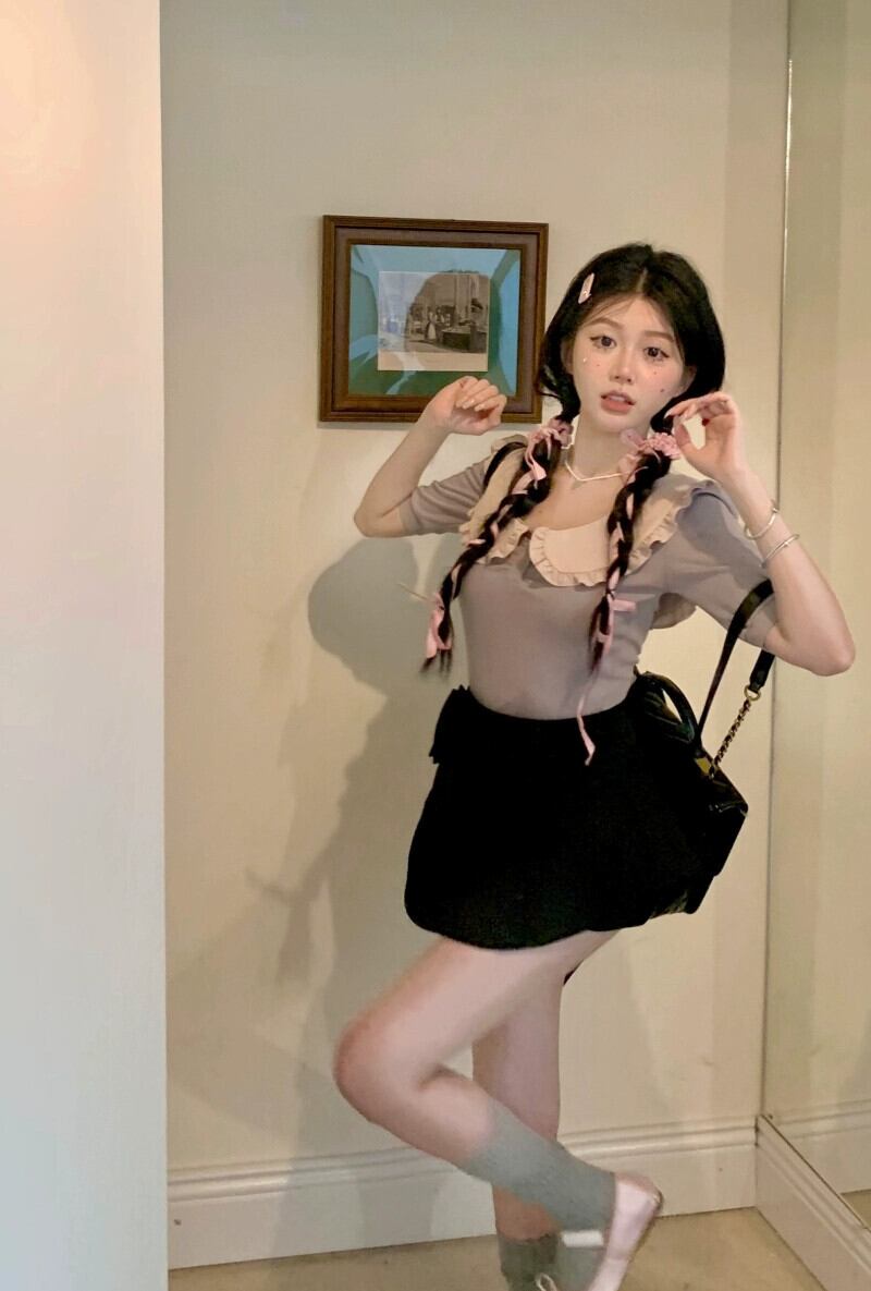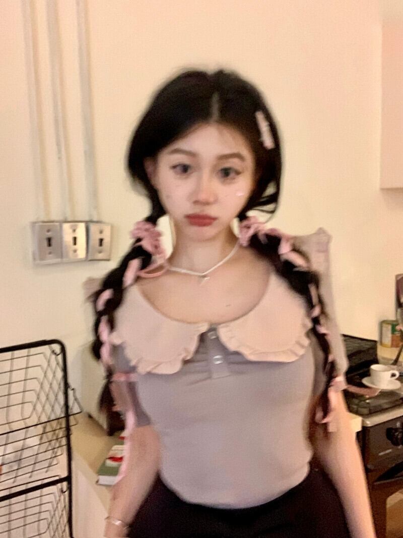 甘い風ドールカラー半袖 Tシャツ婦人服 2023 年夏新作純粋な欲望ショートセクションスリムスリムアウタートップ 大人ガーリー スウィート キュート カジュアル サマー 夏物 ピュア 0921910626779442