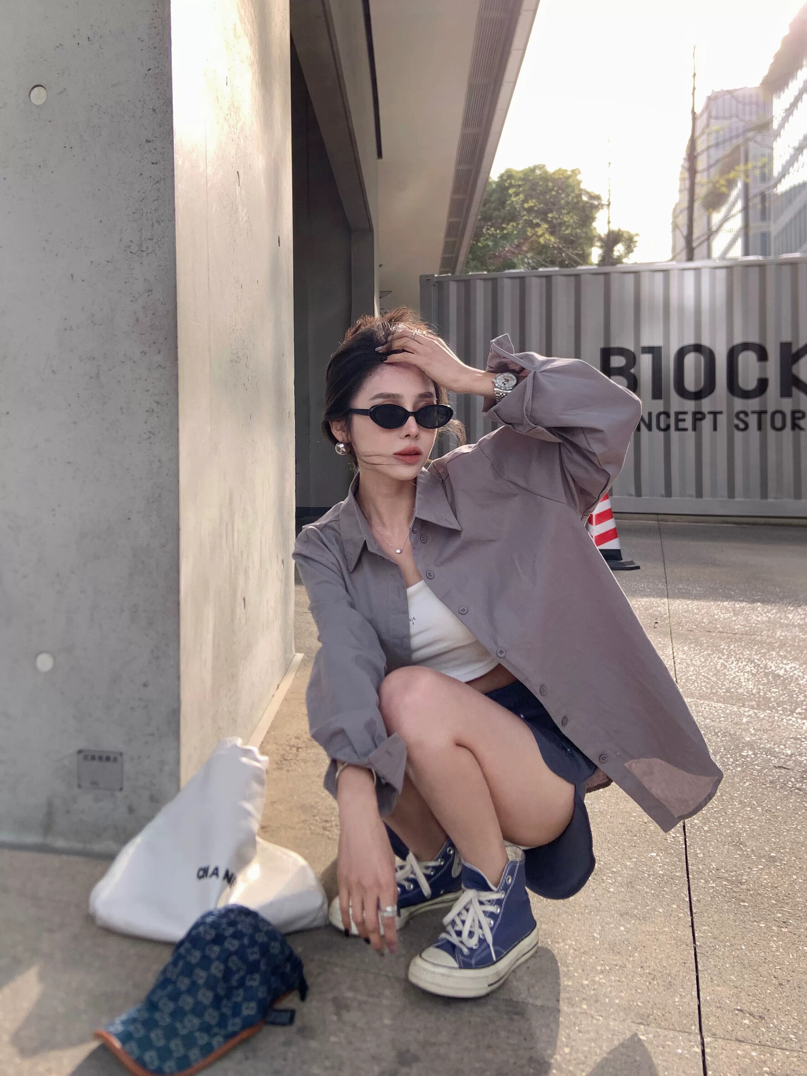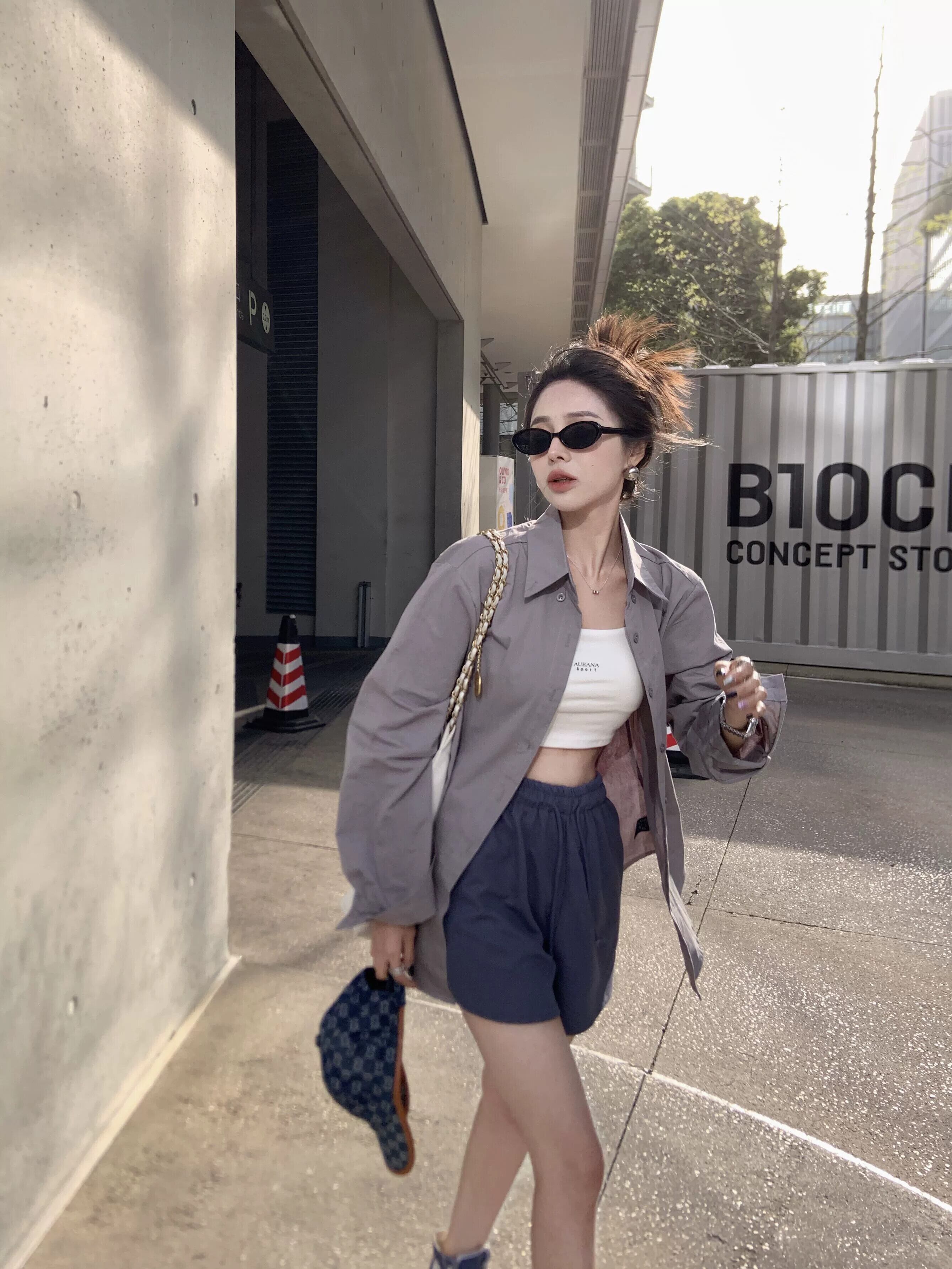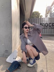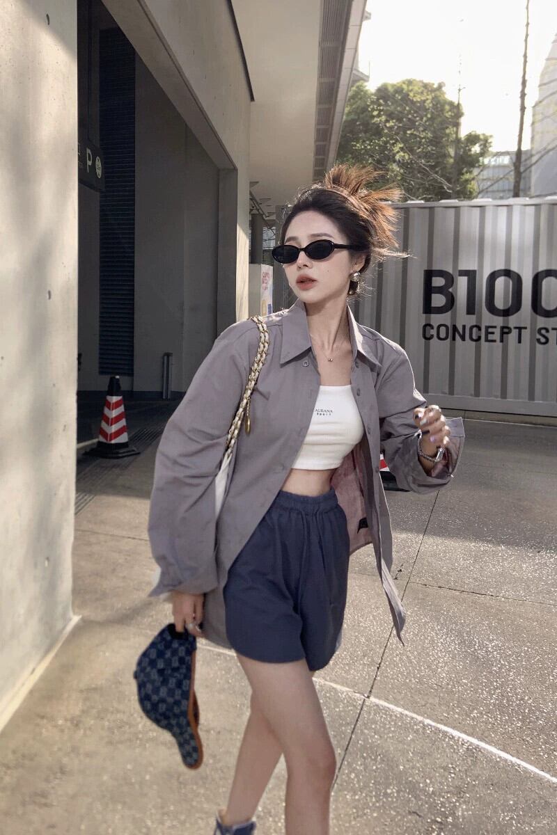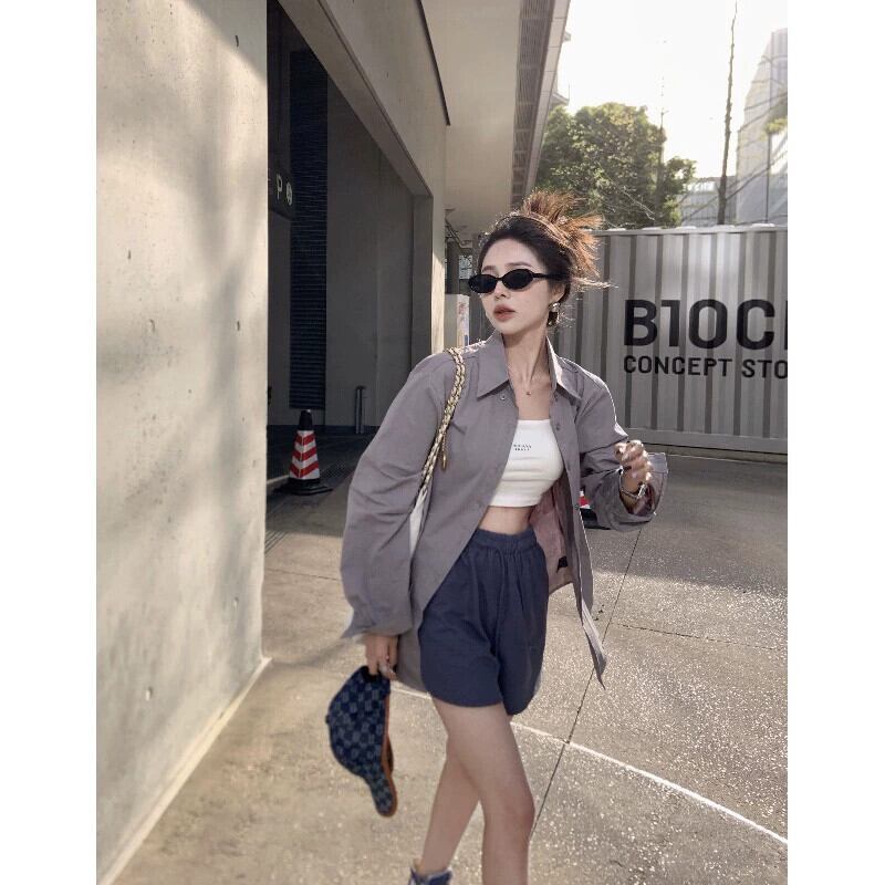 セメントグレー日焼け止めルーズ長袖シャツ女性の夏の 2023 新しいミッドレングススリムシングルブレストカーディガンシャツ ロング サマー 夏物 09219776813599