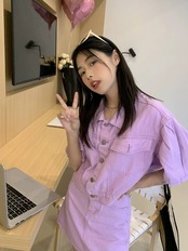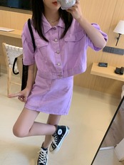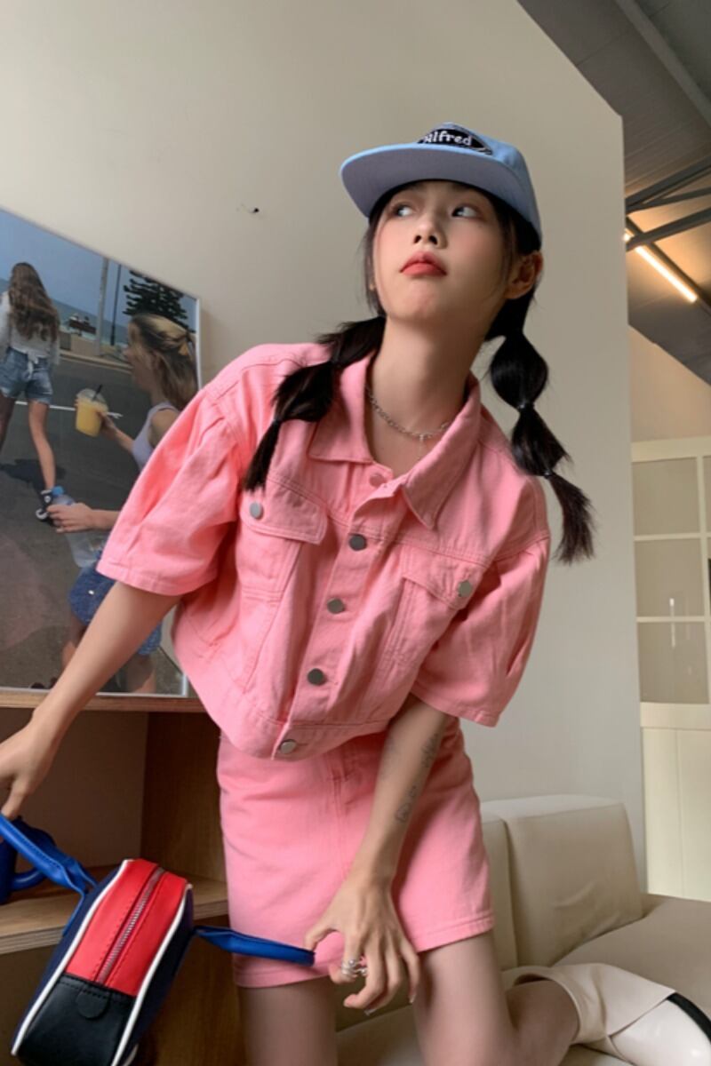 甘くてクールなスタイルのファッションスーツスカート女性の夏の 2023 新しいポロカラーデニムジャケットスカート 2 点セット 大人ガーリー スウィート キュート カジュアル サマー 夏物 0921944544938737