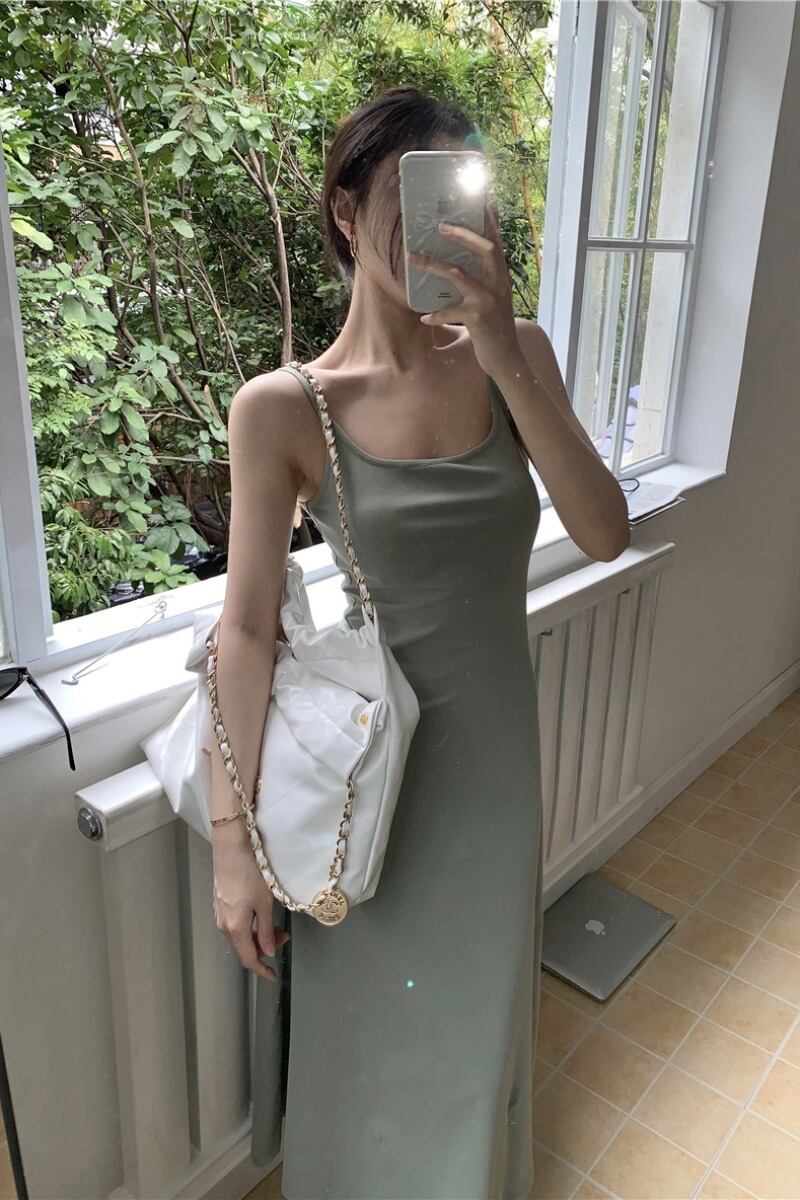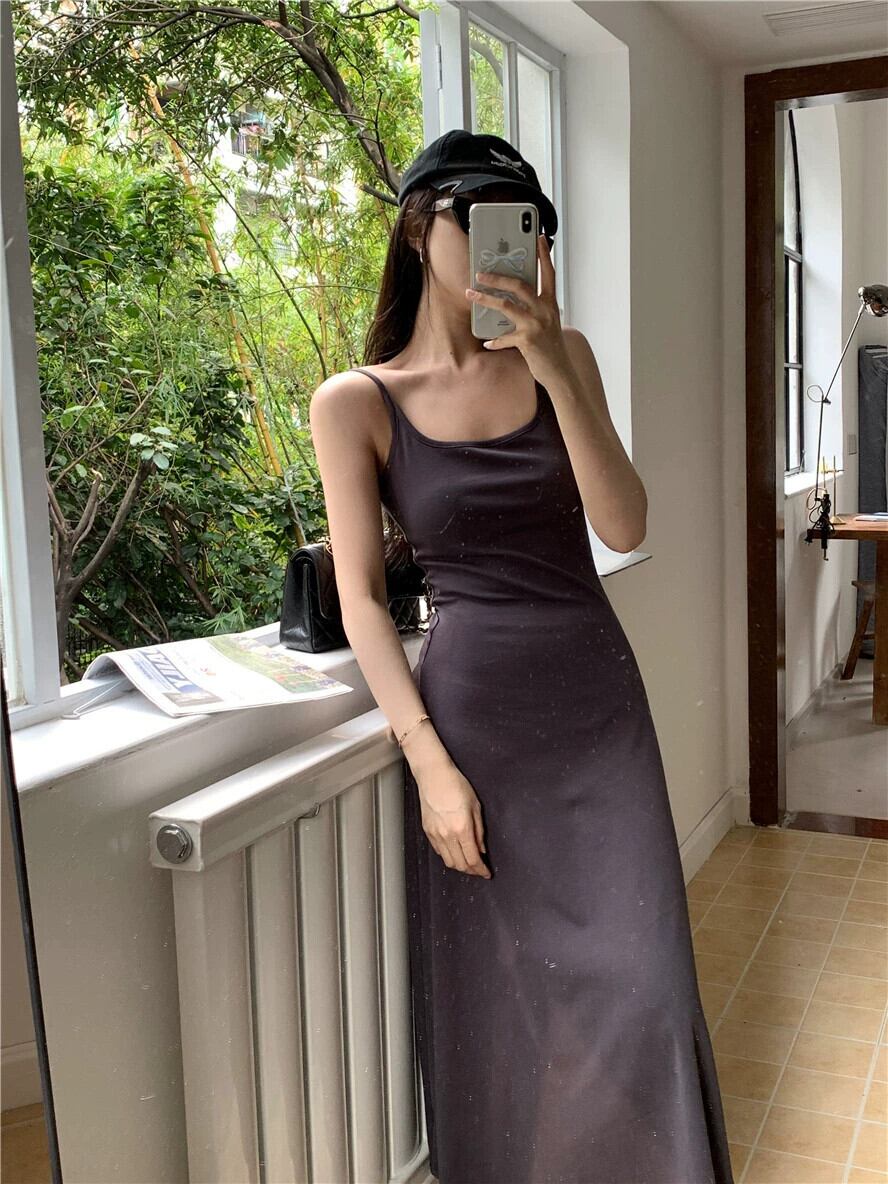 アメリカのサスペンダードレス女性の夏 2023 新しいセクシーなウエスト痩身バッグヒップスカートロングスカート サマー 夏物 0921992429798338