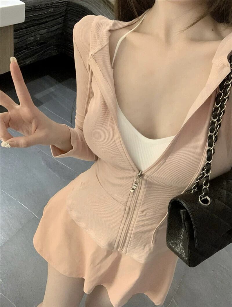 Pure Desire Spice Girl スリムフィット フード付き 長袖 日焼け止めコート レディース 夏 タイト オールマッチ 不規則なショート カーディガン トップ ロング サマー 夏物 0921936803569709