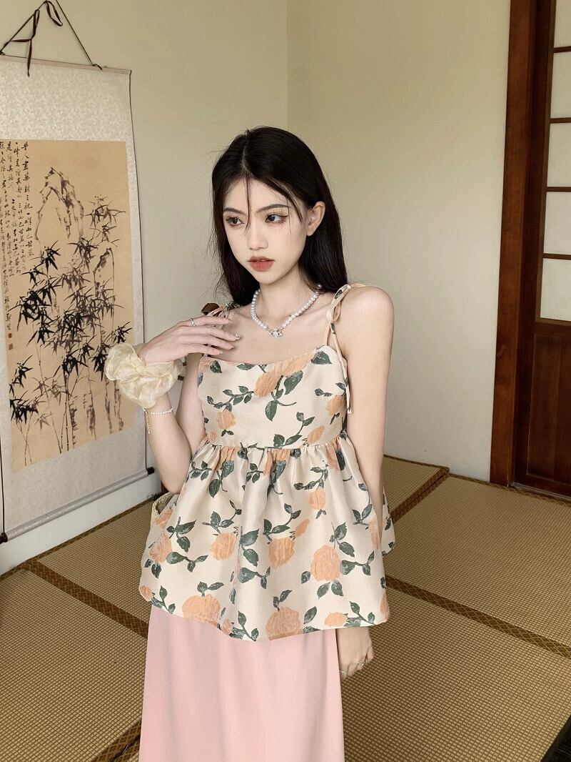 フレンチニッチ気質スーツスカート女性 2023 春の新作スリングフラワーシャツハイウエストスカート 2 点セット ハイウェスト スプリング 春物 フラワーデザイン 0921973540069141