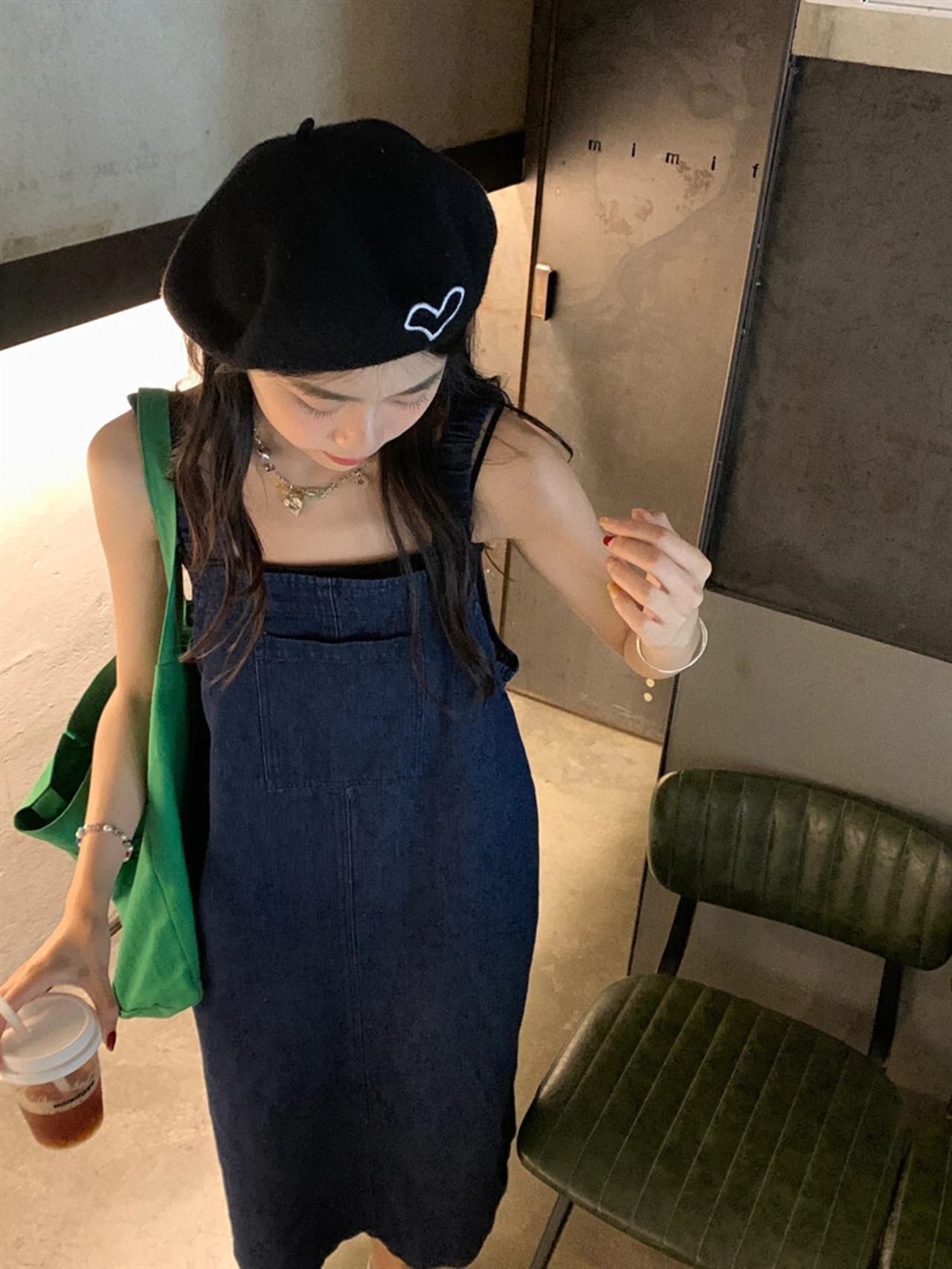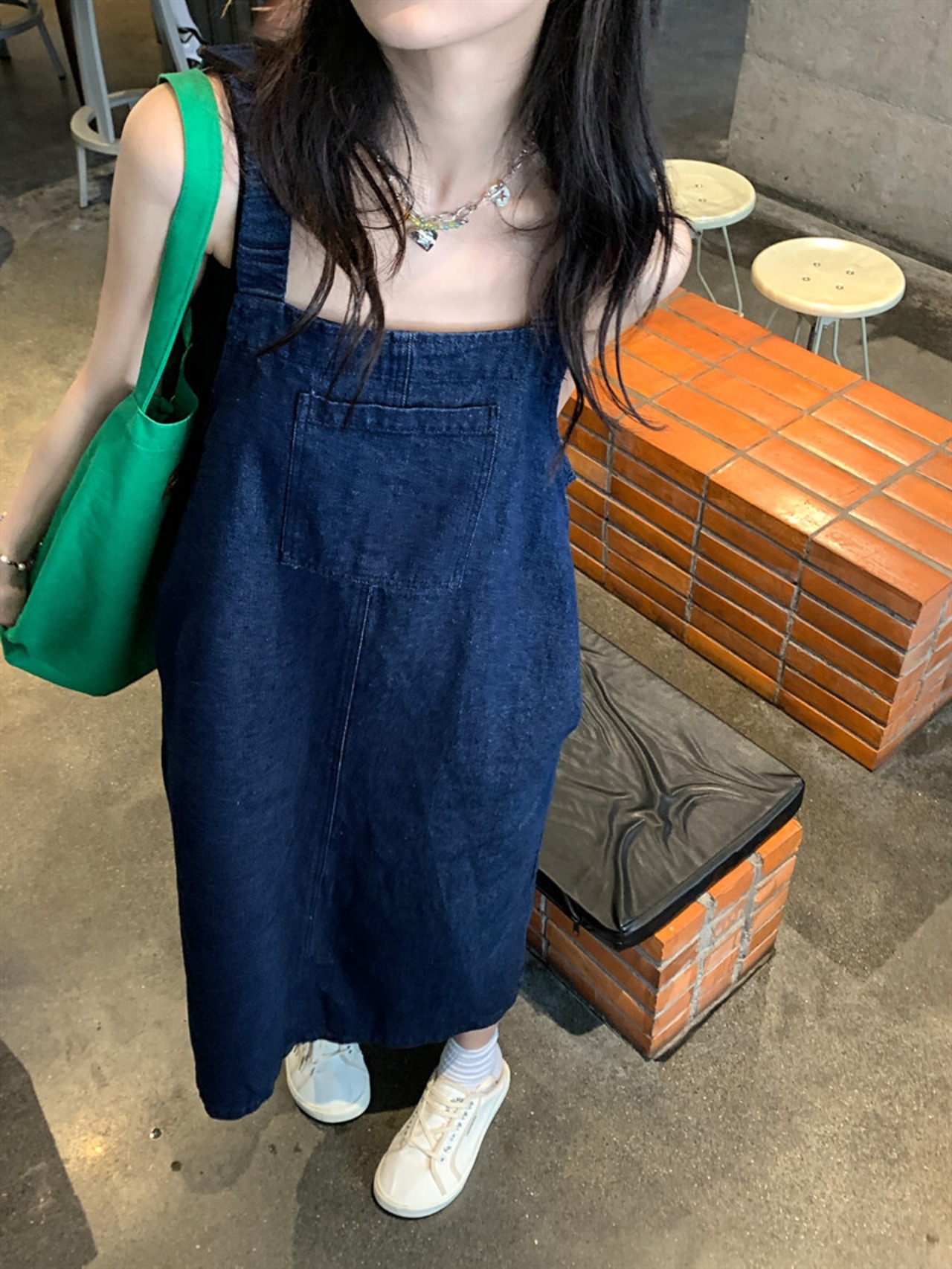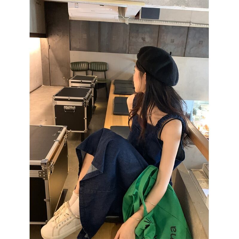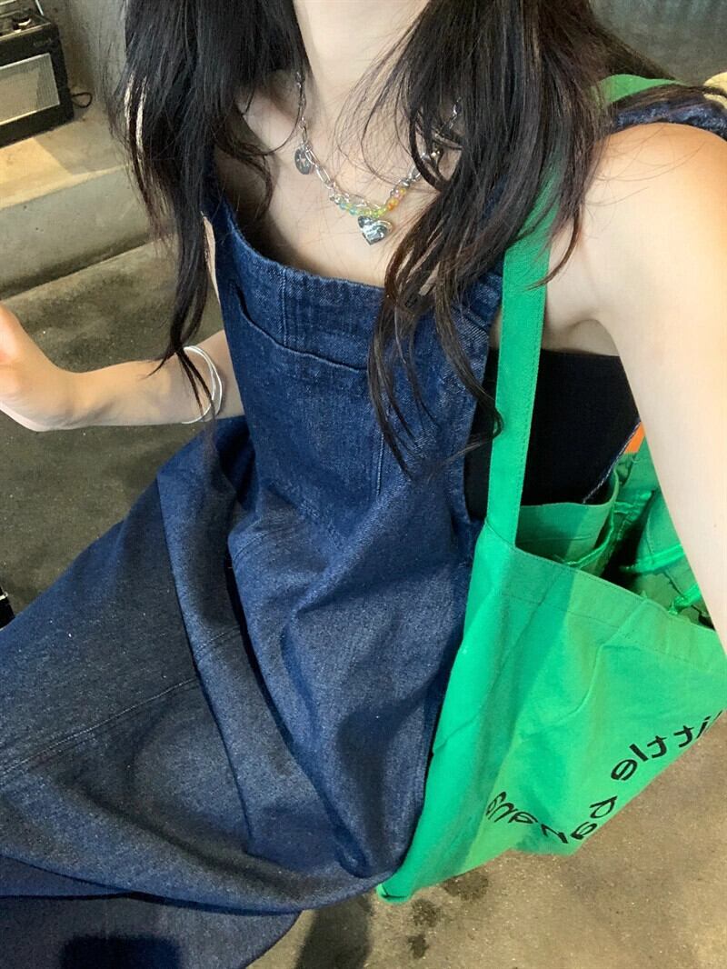 レトロ老化防止デニムサスペンダースカートの女性の夏の 2023 新しいルーズカジュアル a ラインスカートノースリーブミドル丈スカート サマー 夏物 Aライン 0921974658511011