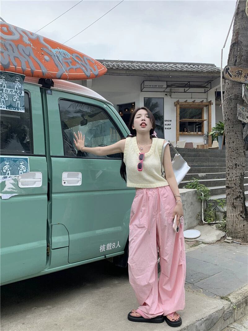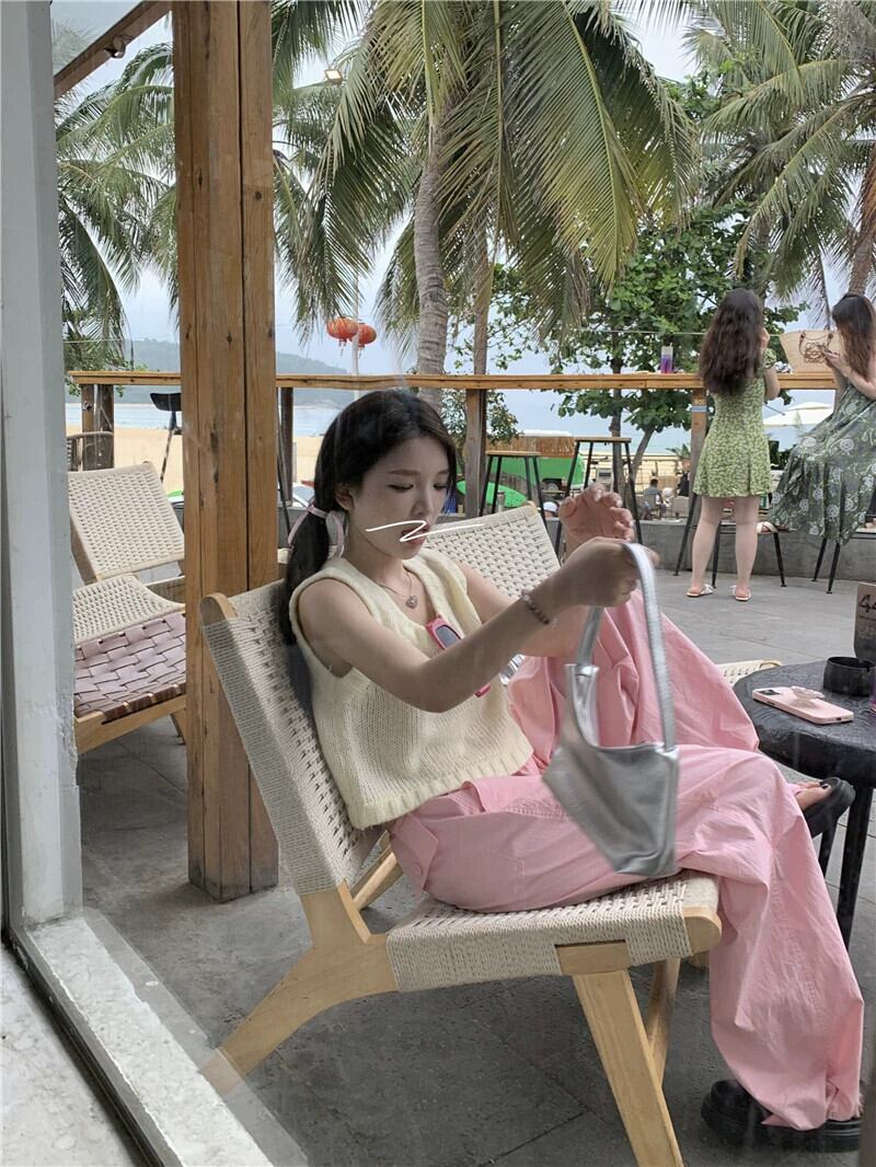 Ins y スタイル スーツ レディース 2023 夏の新しいノースリーブ ニット ベストとパンツのツーピース トレンド サマー 夏物 0921977268546074