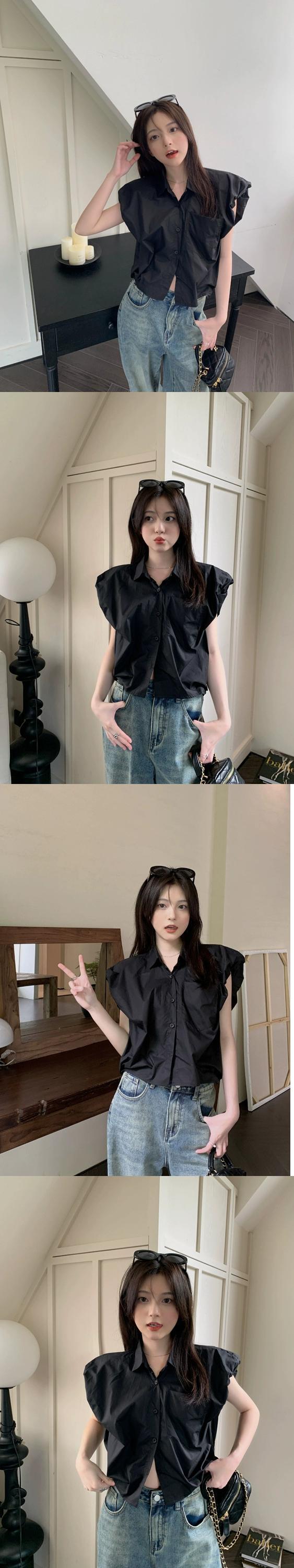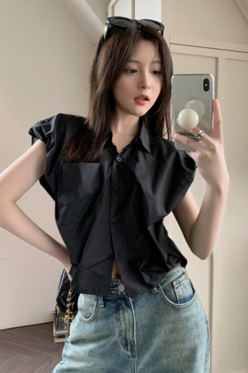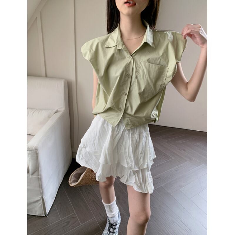 ノースリーブデザインシンプルな無地シャツ婦人服夏 2023 新しいファッションポロ襟緩くて薄いシャツ サマー 夏物 ソリッドカラー 092192906367181