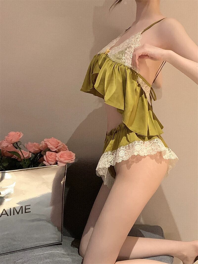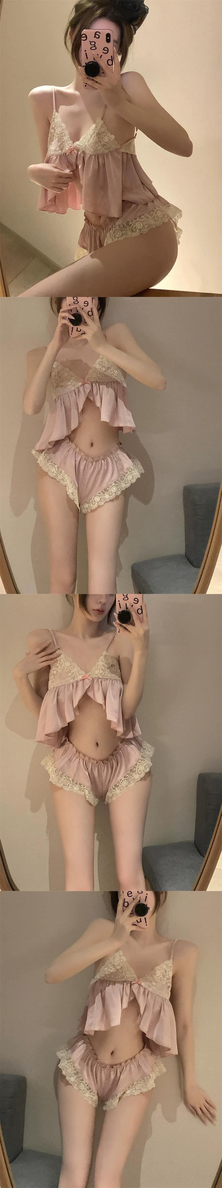 セクシーなレースのフリルキャミソールパジャマセット女性の夏のショートパンツパジャマパンツアイスシルクホームサービスツーピースセット サマー 夏物 ショーツ ブルマー 0921943516601984