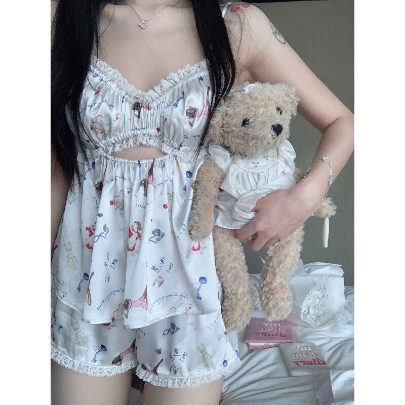 純粋な欲望パジャマセット女性の夏の 2023 新しいレースサスペンダーロングとショートパンツホームサービス 2 点セット潮 サマー 夏物 092192523925677