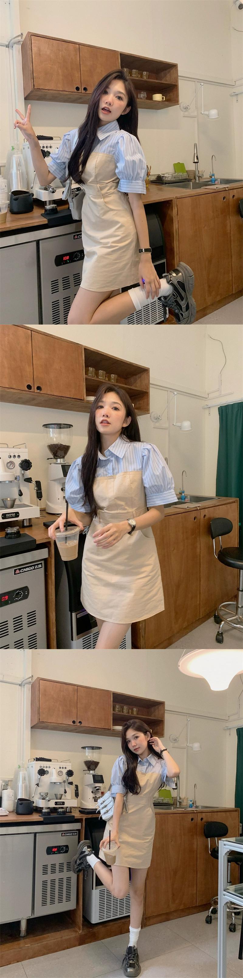 センスシックなニッチフェイクツーピースドレスの女性の 2023 夏の新しいパフスリーブウエスト痩身 A ラインスカート サマー 夏物 Aライン 0921956123115083