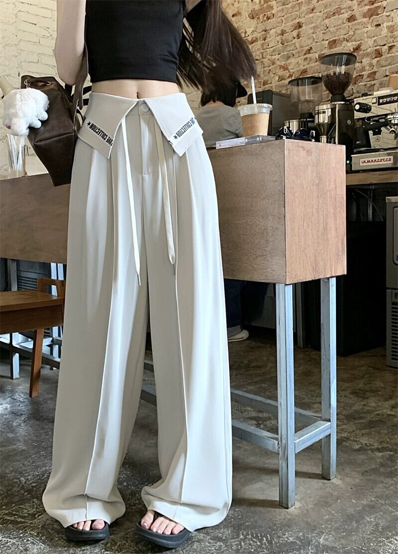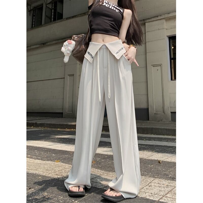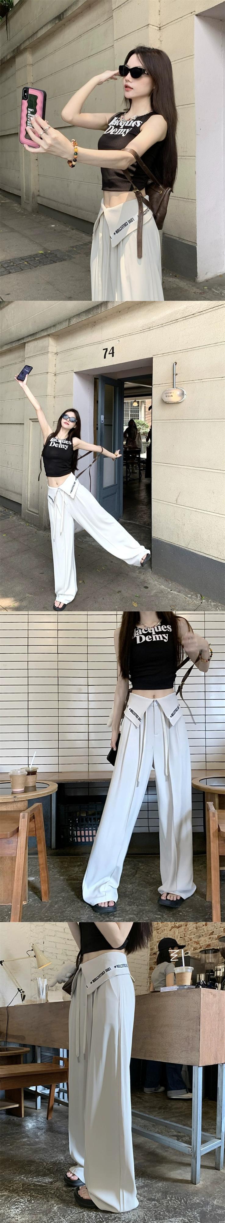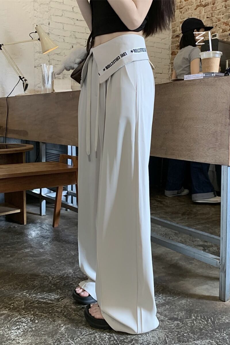 有能ウエストフランジ文字カジュアルパンツ女性の夏の 2023 新しいオールマッチ気質ハイウエスト薄いスーツのズボン ハイウェスト サマー 夏物 0921979124569236