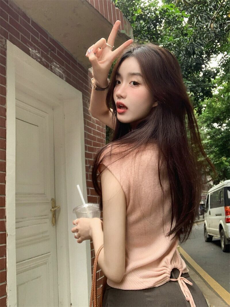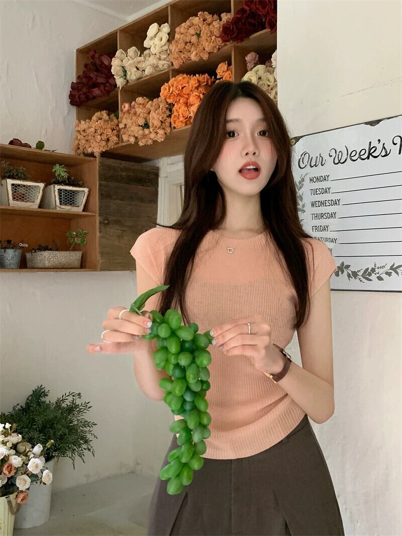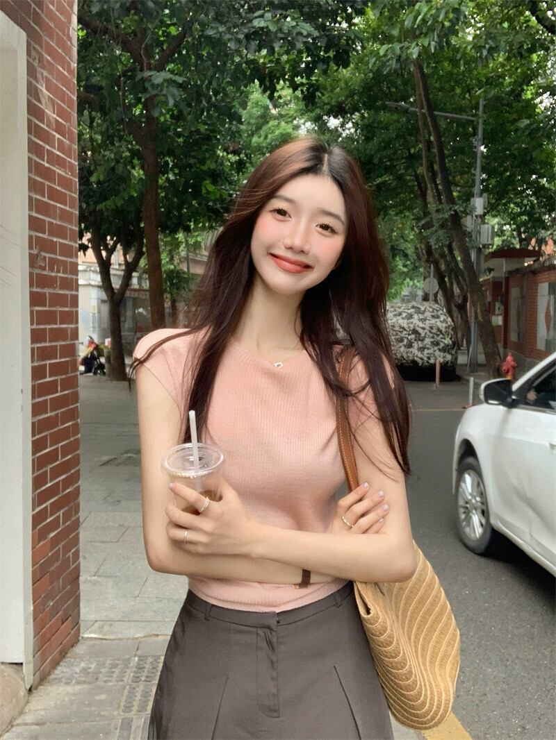気質ストラップ付き中空ハーフハイカラーセーターレディース2023年夏新作優しくスリムな半袖トップ サマー 夏物 0921991247550126