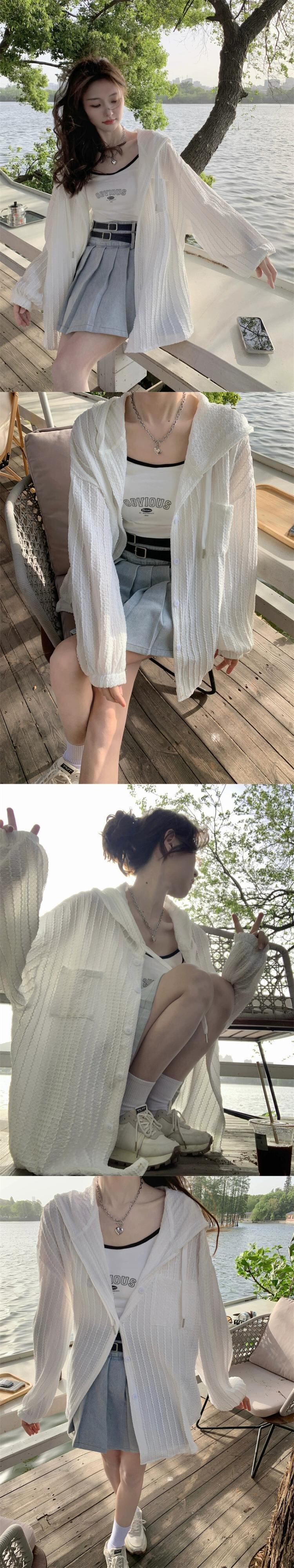 バージョンデザインセンスニッチフード付きシャツジャケット女性の夏 2023 新しいカジュアルルーズオールマッチ長袖カーディガン ロング サマー 夏物 0921954603183847