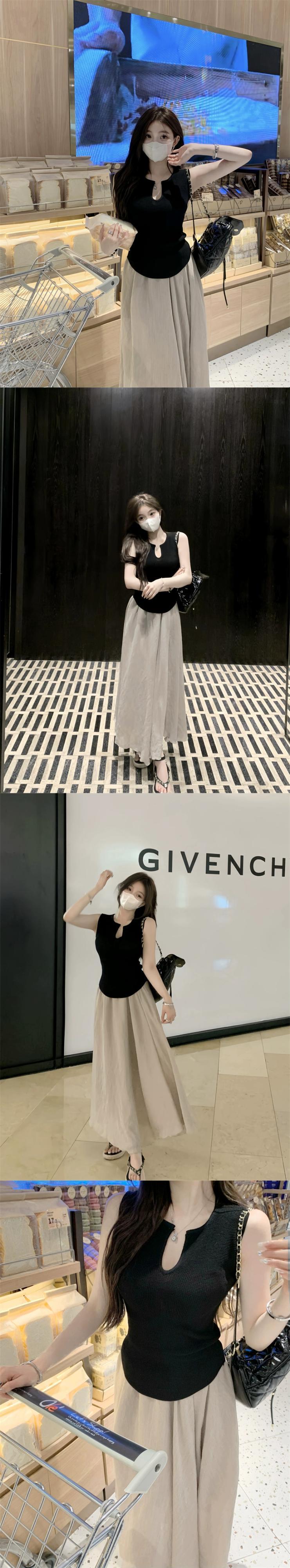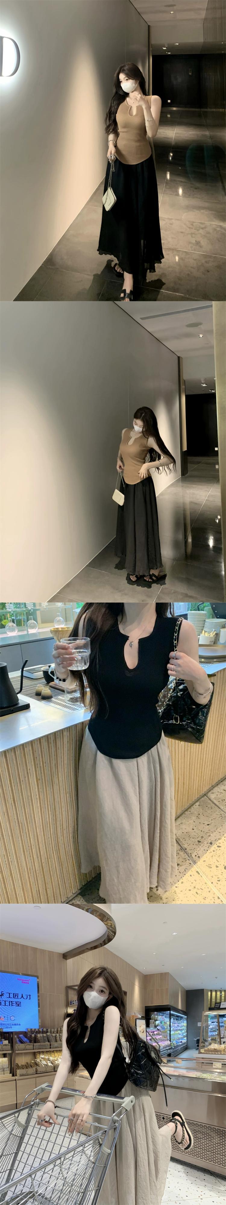 甘いスタイルのファッションスーツの女性の 2023 夏の新しいノースリーブニットトップしわ薄手スカート 2 点セット 大人ガーリー スウィート キュート カジュアル サマー 夏物 0921950623608237