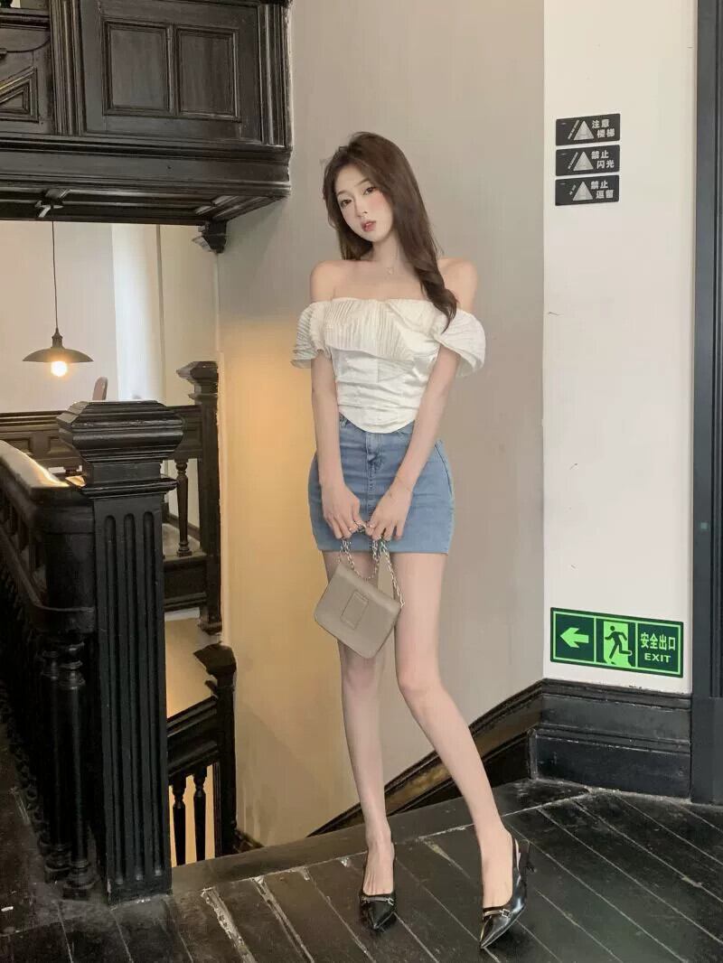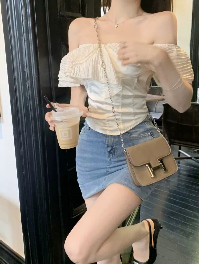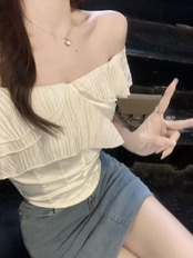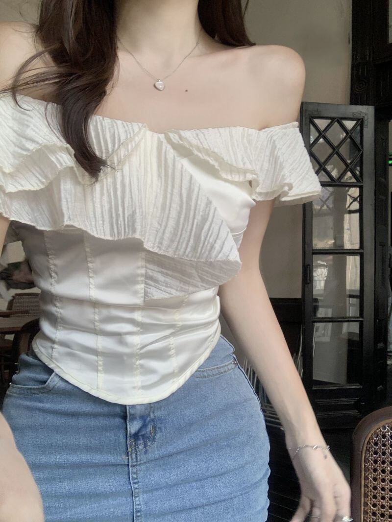 フレンチシックなニッチ蓮の葉サイドカラーシャツ女性の2023年夏新しい気質スリムショートトップ サマー 夏物 0921951298898567