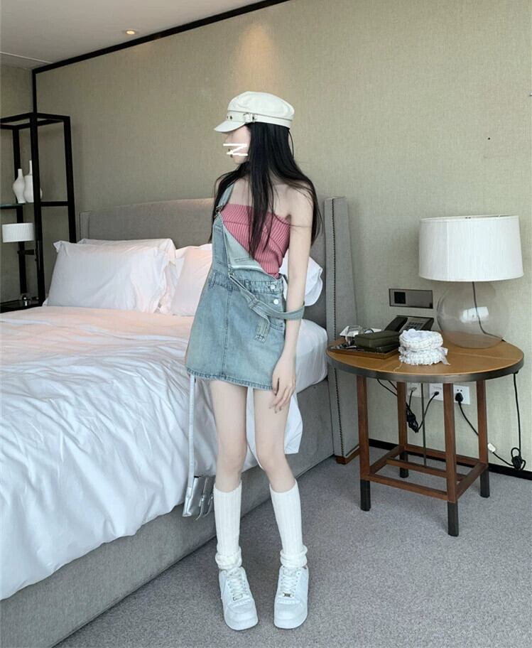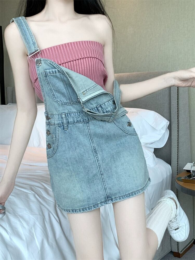 老化防止デニムベストドレス女性の夏の 2023 新しいスタイルスリムで薄いアウターウェアショートストラップスカート サマー 夏物 0921929659145212