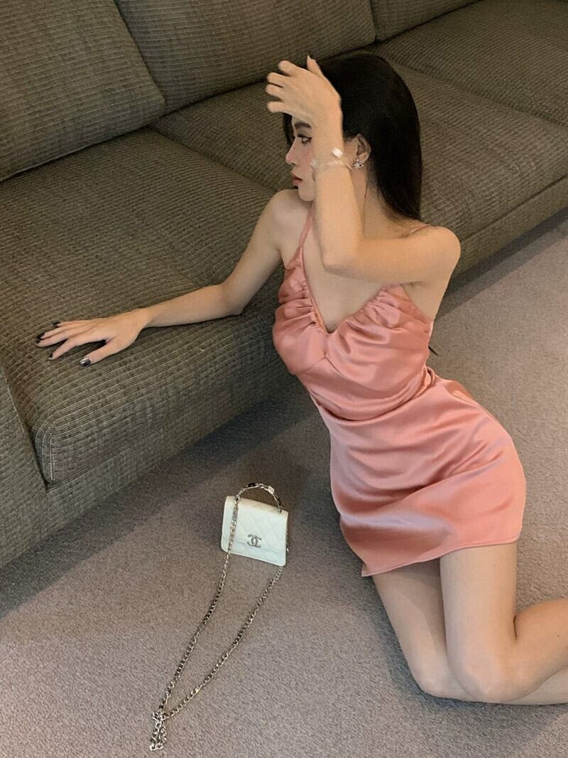 -終わりの気質ピンクのサスペンダードレスの女性の夏の 2023 新しいプリーツウエスト痩身セクシーな A ラインスカート サマー 夏物 Aライン 0921980438317517