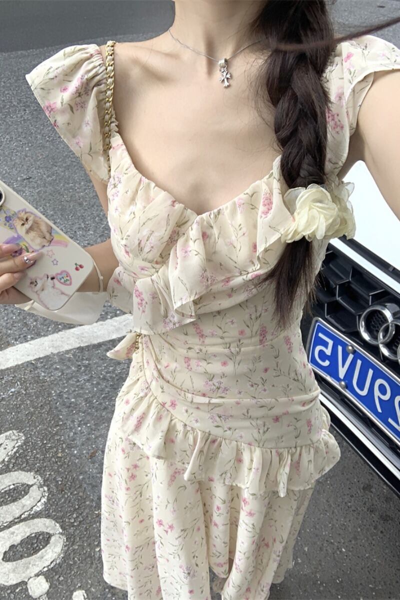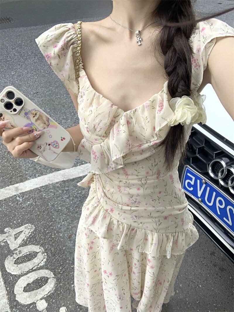 フレンチジェントル風花サスペンダードレス女性の夏不規則なロングスカートウエストスリムファルバラスカート サマー 夏物 花柄 09219323114537
