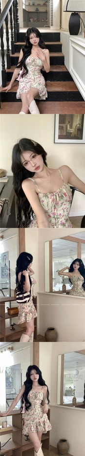 フレンチフローラルスリングドレス女性の夏プリーツウエスト痩身スカート甘いティーブレイクスカートaラインスカート 大人ガーリー スウィート キュート カジュアル サマー 夏物 花柄 0921936957249574