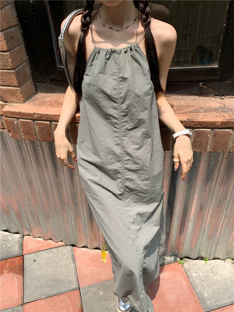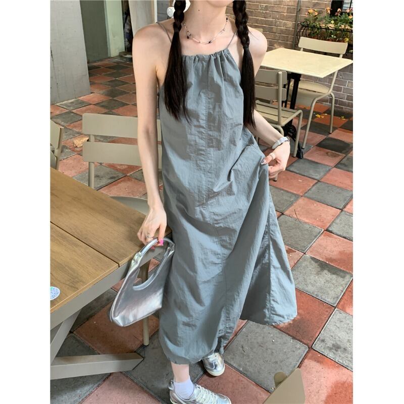 ニッチデザインセンスツーリングサスペンダードレス女性の夏の 2023 新しいセクシーなオープンバック巾着痩身ドレス サマー 夏物 0921994312162847