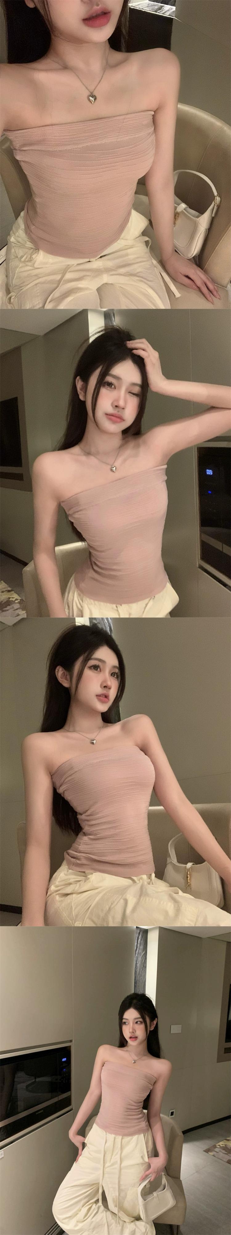 セクシーなスタイルのベストチューブトップ女性の夏の 2023 新しい純粋な欲望スタイルスリムフィットショートノースリーブトップ潮 半袖 ハーフスリーブ サマー 夏物 ピュア 0921987942360191