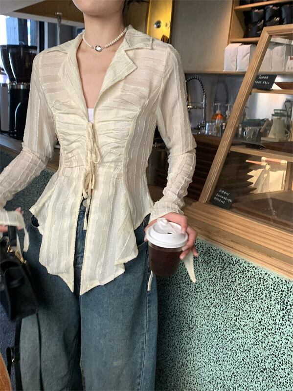 センスニッチストラップ長袖シャツレディース2023年夏新作不規則シックスリムスリムトップトレンディ ロング サマー 夏物 0921916157379601