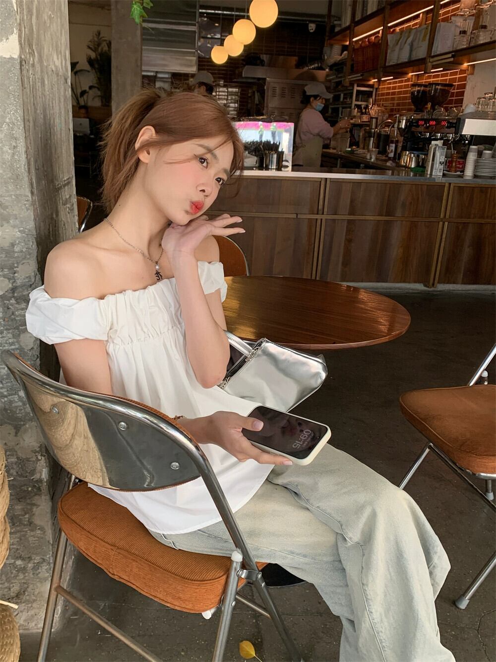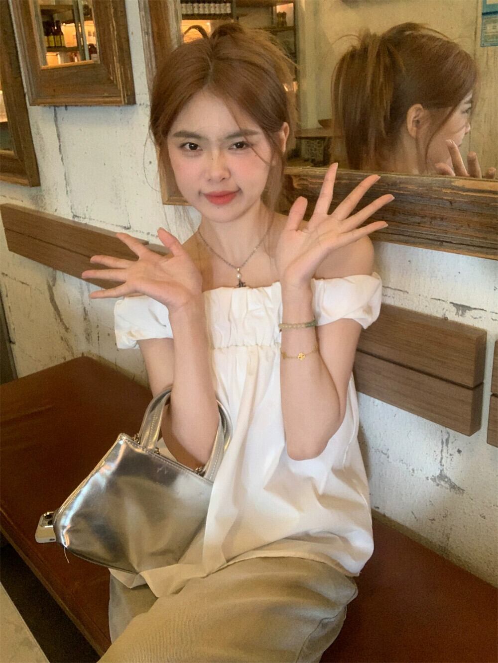 フランスのワンショルダー白シャツ女性の 2023 年夏新しい気質オールマッチショートルーズで薄いアウターシャツ ホワイト サマー 夏物 092193984792290