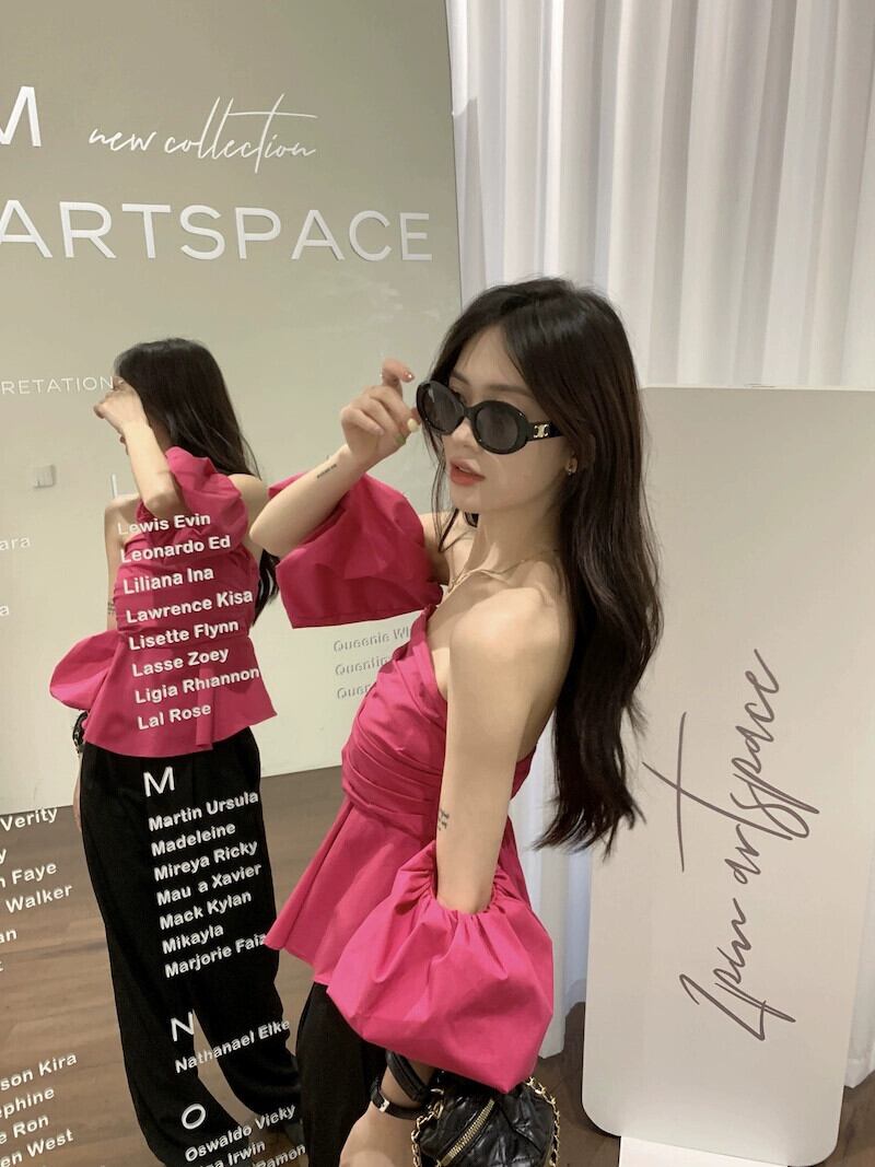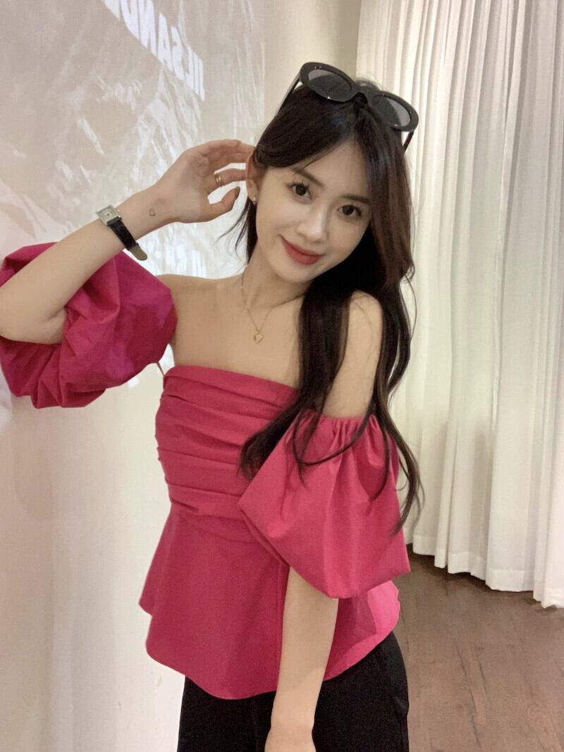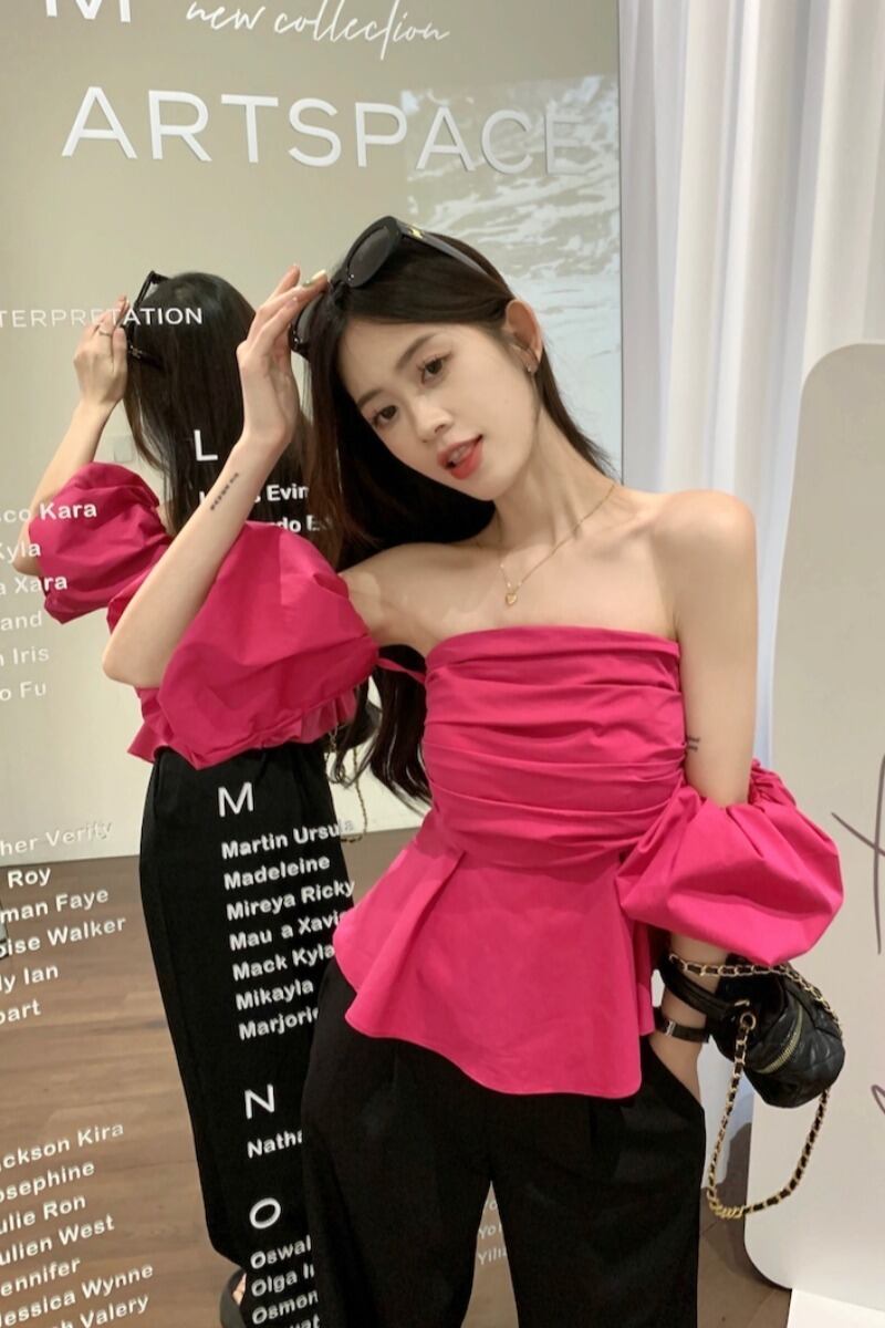 スイートバブル半袖チューブトップシャツレディース夏純粋な欲望ワンショルダーシャツスリムフィットプリーツショートトップ 大人ガーリー スウィート キュート カジュアル サマー 夏物 ピュア 0921952711834341