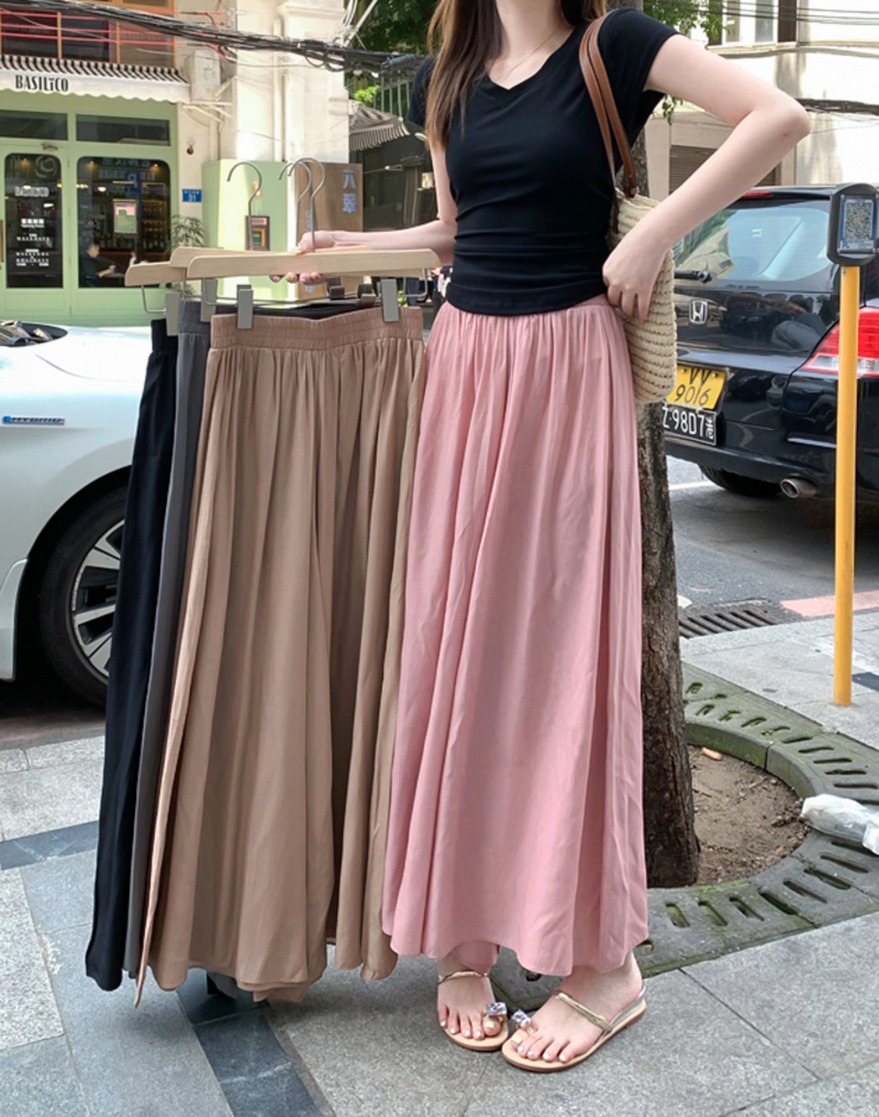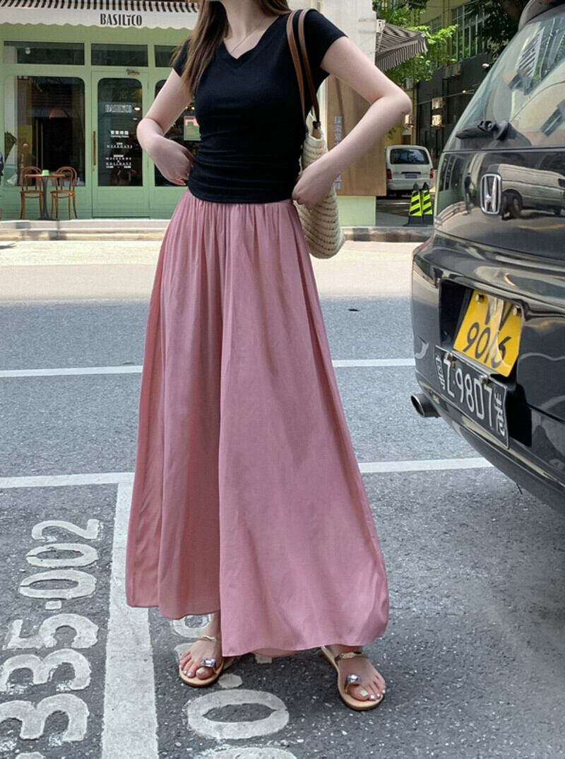 怠惰なスタイル無地オールマッチカジュアルパンツ女性の夏の 2023 新しいハイウエストルーズスリムファッションワイドレッグスカートパンツ ハイウェスト サマー 夏物 ソリッドカラー 092199557217512