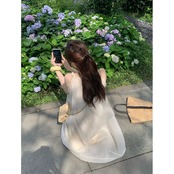 穏やかな休日スタイルのメッシュサスペンダードレスの女性の夏の 2023 新しい気質薄いオールマッチミドル丈スカート サマー 夏物 0921958592158551