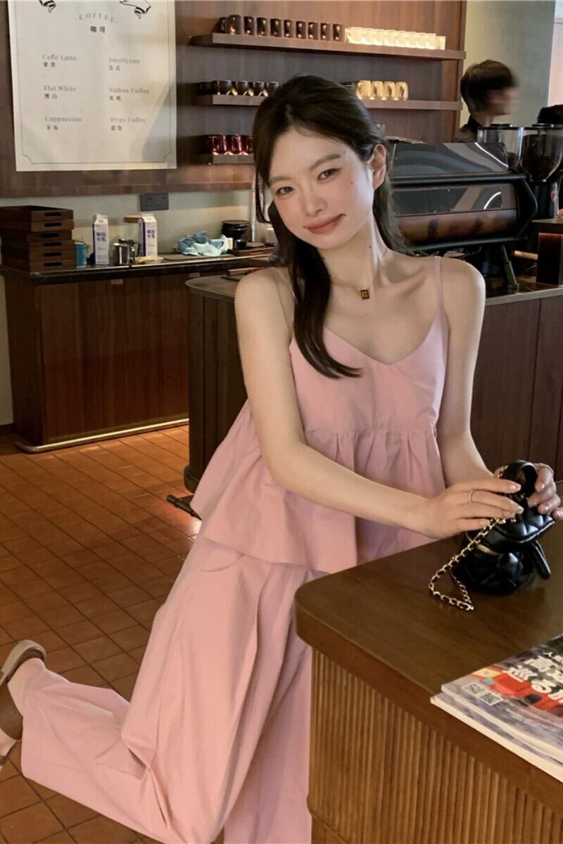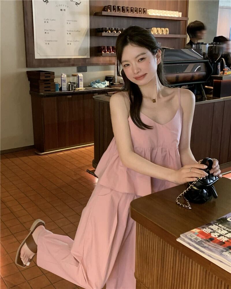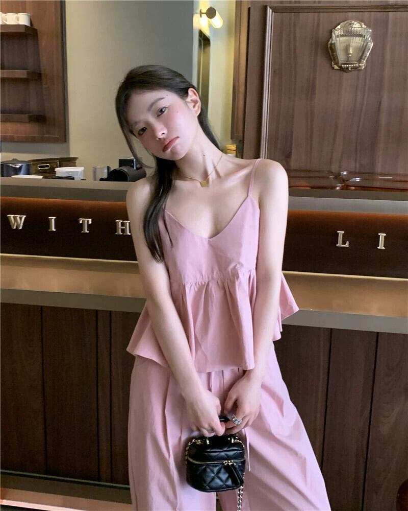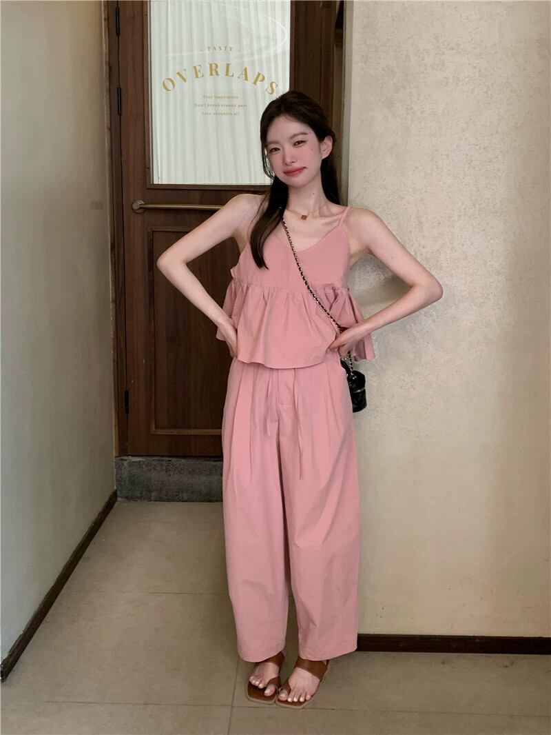 バージョン気質オールマッチファッションスーツ女性の夏 2023 新しい人形サスペンダートップハイウエストズボン 2 点セット ハイウェスト サマー 夏物 0921957723851167
