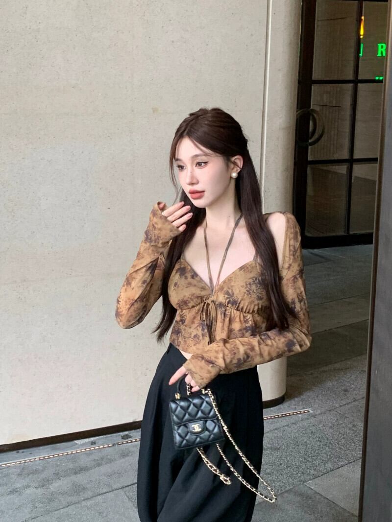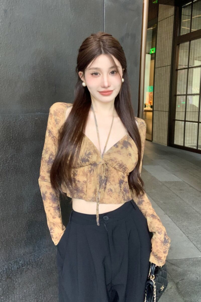 純粋な欲望スタイルぶら下げネック絞り染めキャミソール女性の夏のセクシーなスリムショート日焼け止めベストカーディガン 2 点セット サマー 夏物 0921916348864123