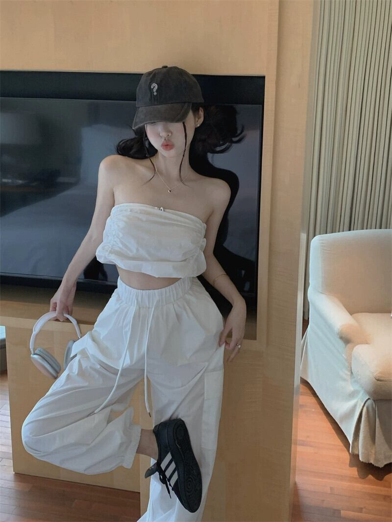 アメリカンファッションスーツ女性2023夏新デザインチューブトップベストツーリングカジュアルパンツ2点セット サマー 夏物 0921964170211588