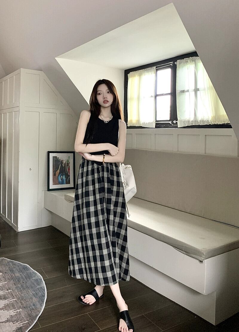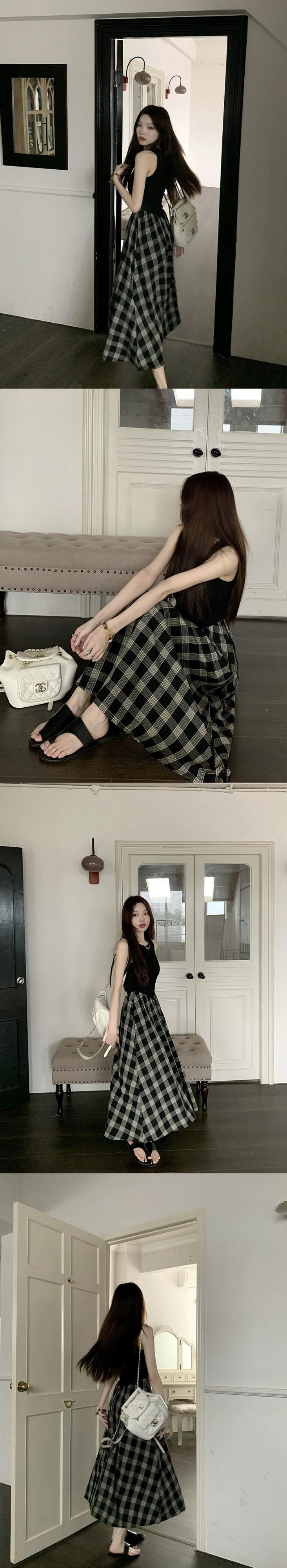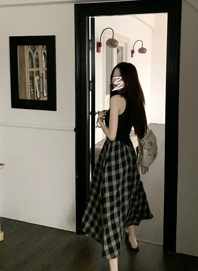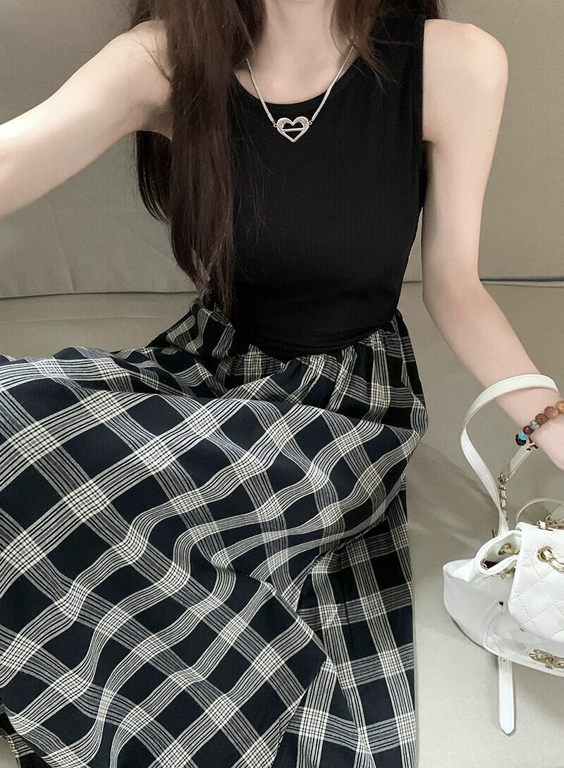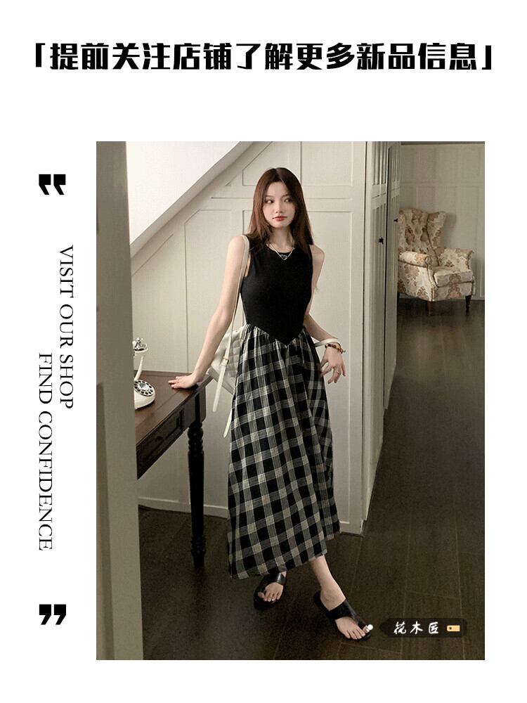 センススプライシングノースリーブベストドレス女性の夏ヘップバーンスタイルロングスカート気質ウエスト痩身aラインスカート サマー 夏物 0921944145088600