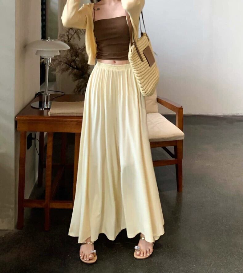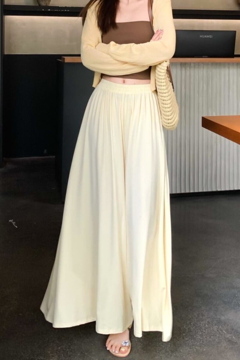 怠惰なスタイルの弾性ウエストアプリコットカラードレープカジュアルパンツレディース夏ゆるくて薄いワイドレッグキュロット薄セクションロングパンツ エラスティック 伸縮 サマー 夏物 0921913994227281