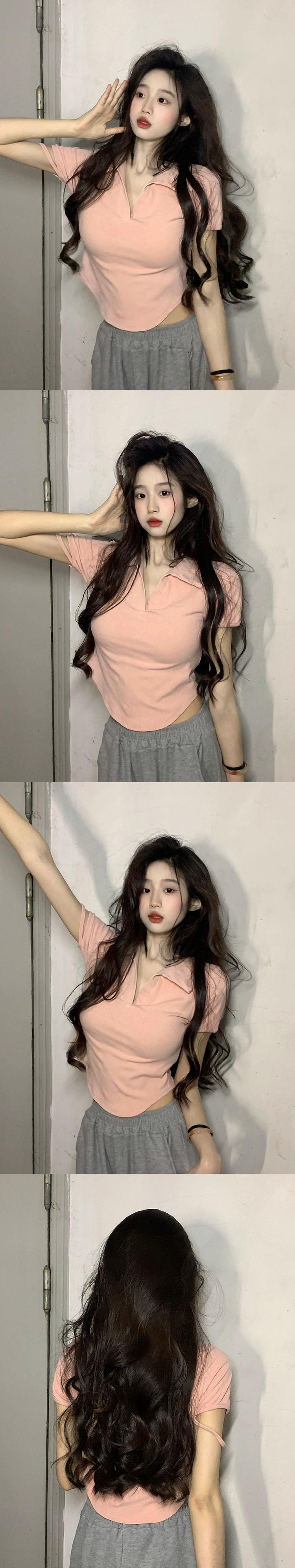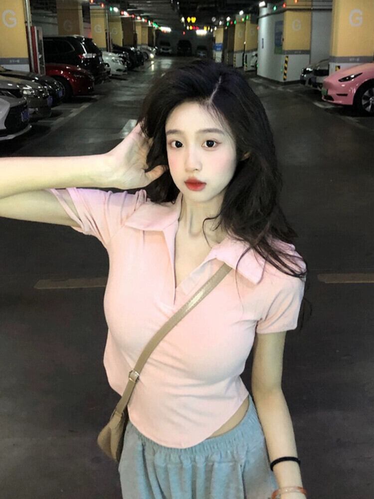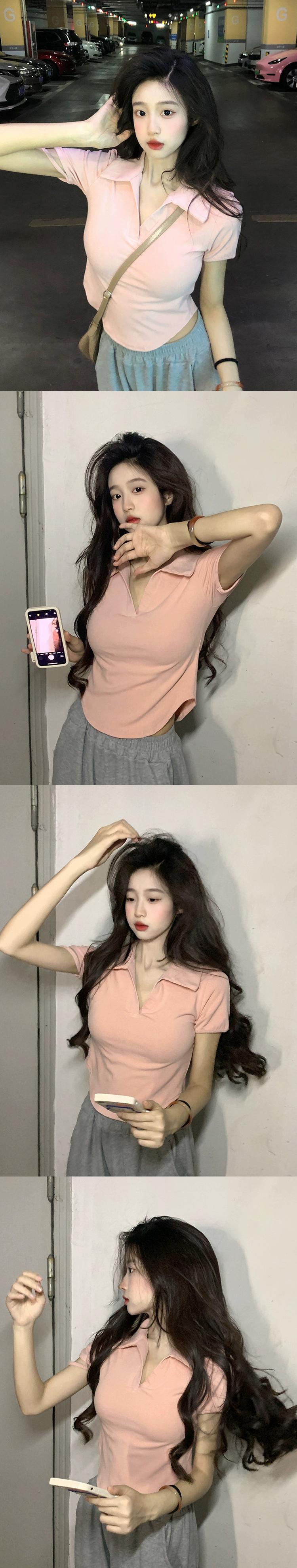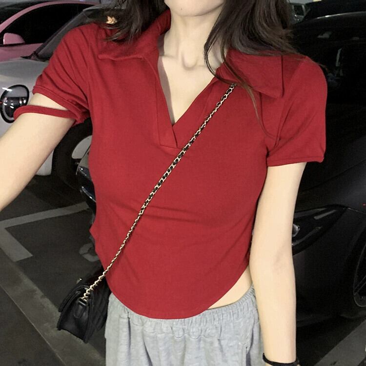 レトロな香港スタイルの赤いラペル半袖 T シャツの女性の 2023 夏の新しいスリム フィットと薄いショート ショルダー トップ レッド サマー 夏物 Tシャツ 0921999289751680