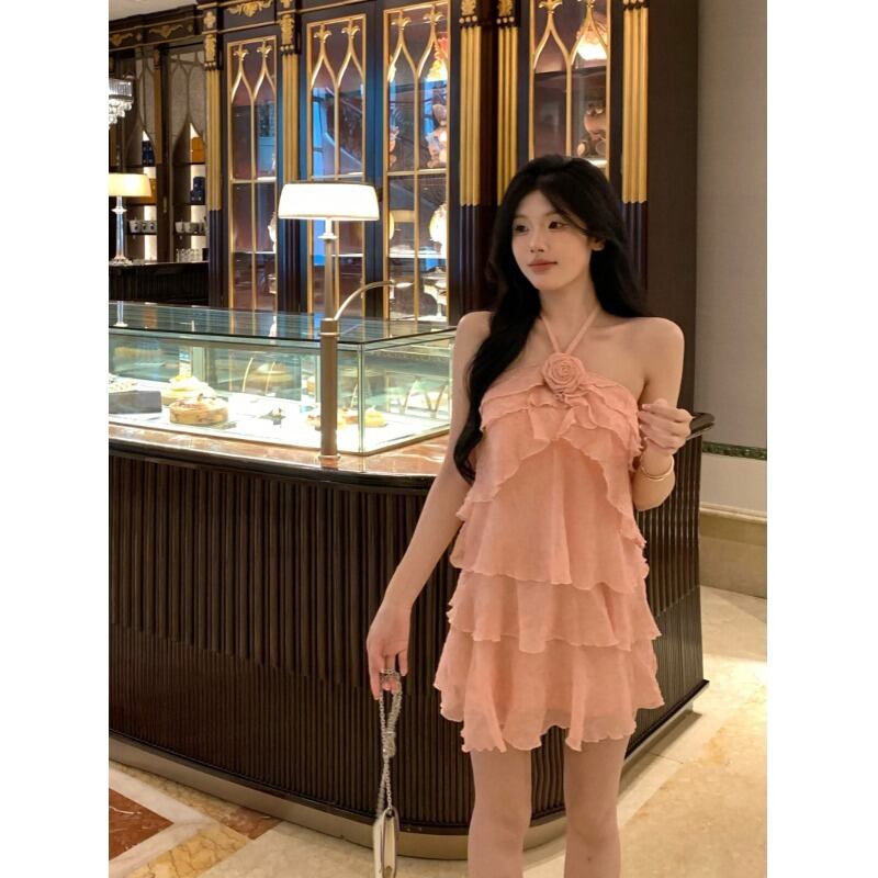 フレンチエレガントな y スタイルホルターネックドレス女性の夏の 2023 新しい優しい風立体フラワーケーキスカート サマー 夏物 フラワーデザイン 0921929158815144