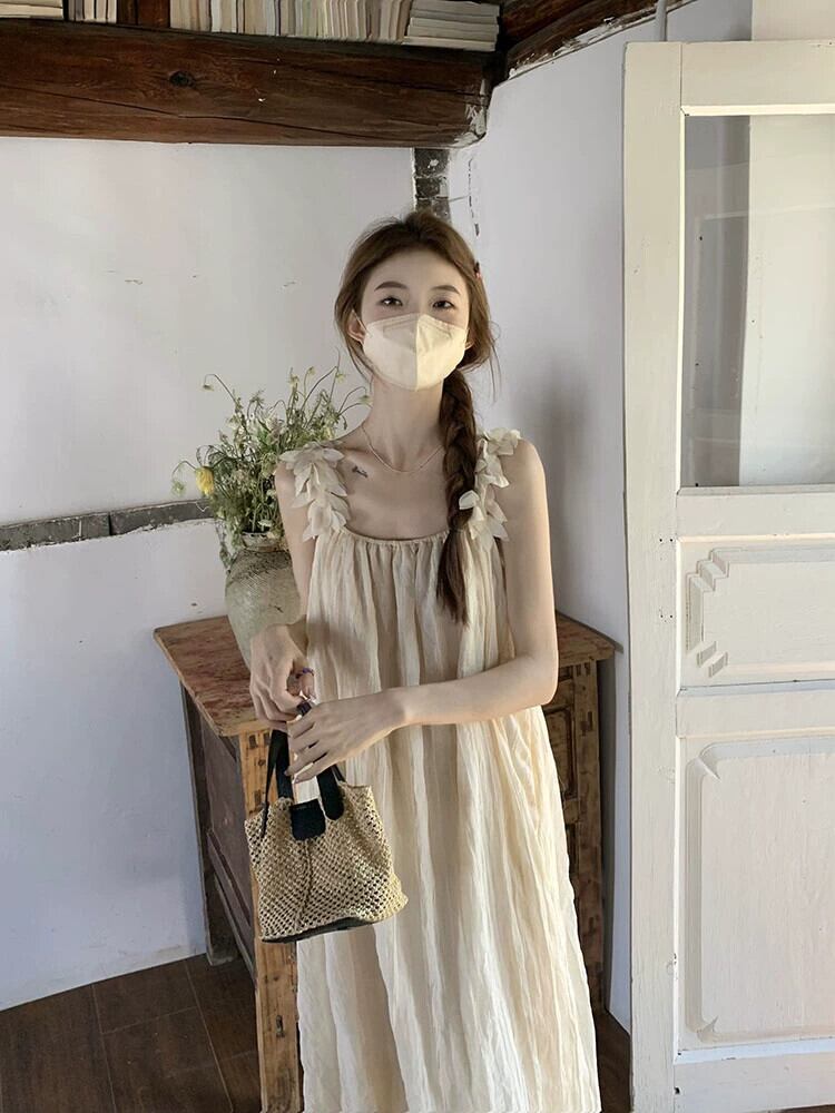 ホリデースタイルフェザーデザインサスペンダードレス女性の夏の2023新しい優しい気質薄いオールマッチAラインスカート サマー 夏物 0921986164182778